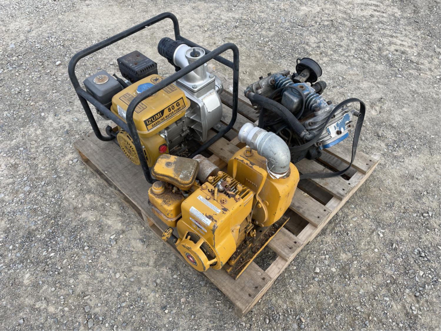 Monarch BSG-8 1-1/2 electric water pump, Izumi 80G 3 inch gasoline water pump, under hood air compressor