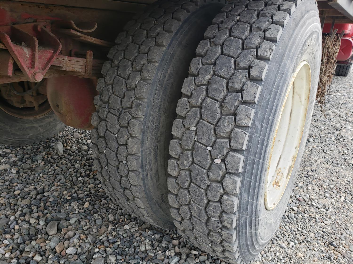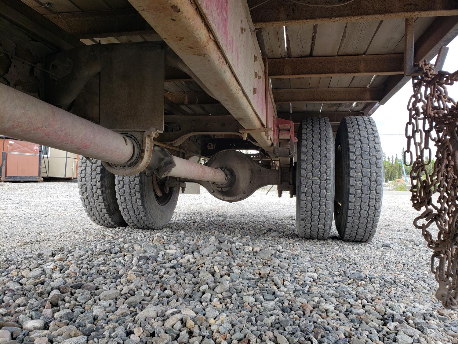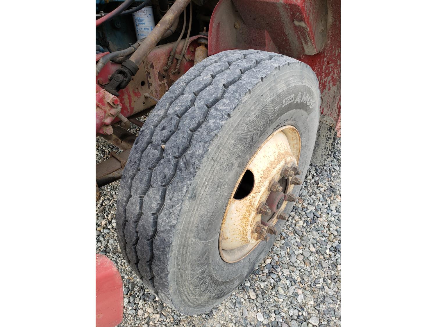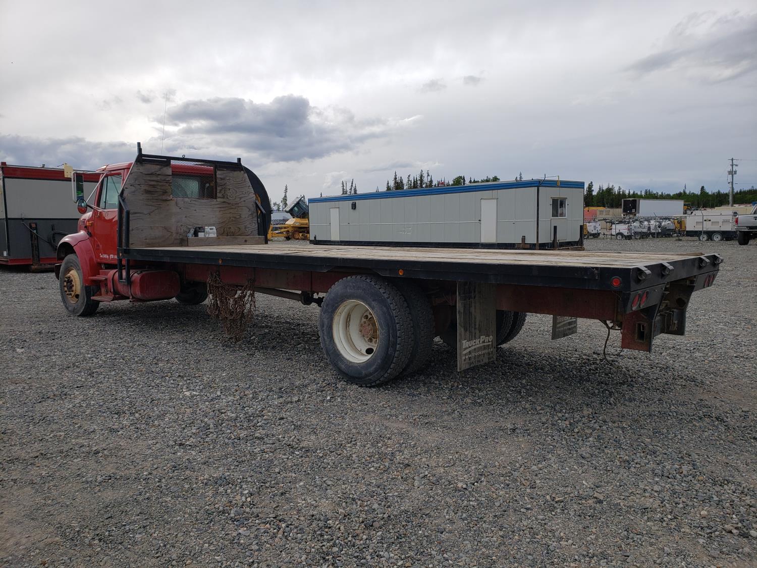 International DT466E 7.6 L 6 cylinder diesel engine, 7 speed manual transmission, 23 ft deck, spring suspension, 10,000 lb front axle, 18,999 lb rear axles, 254 inch WB, 11R22.5 tires
