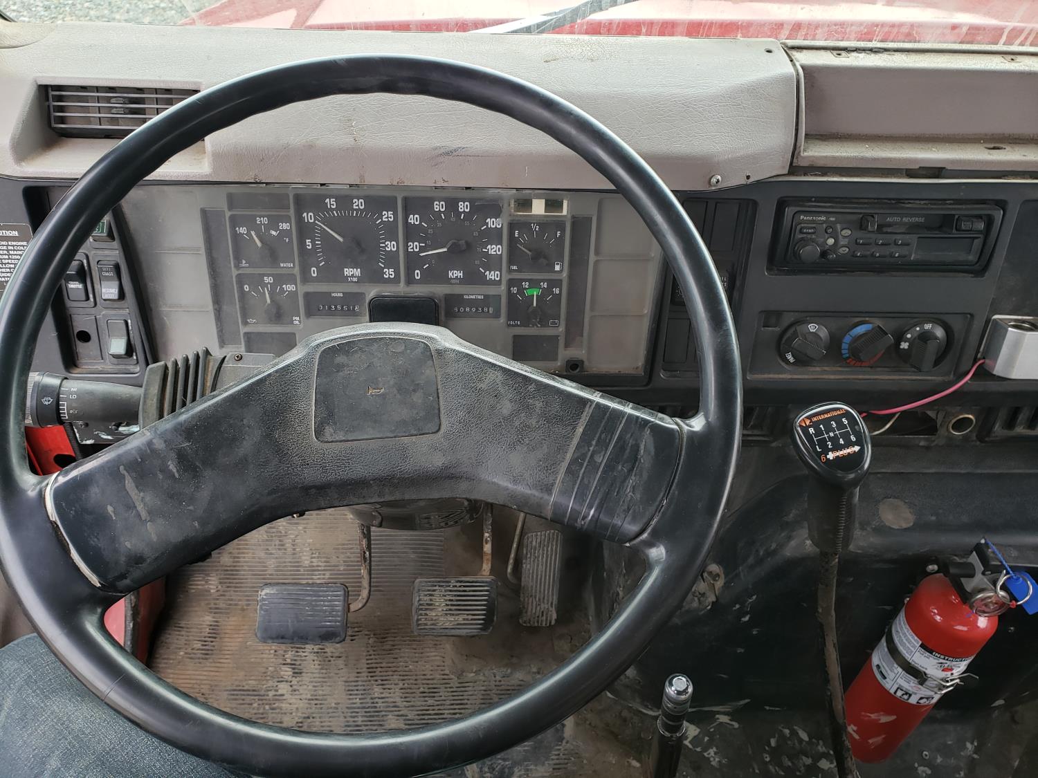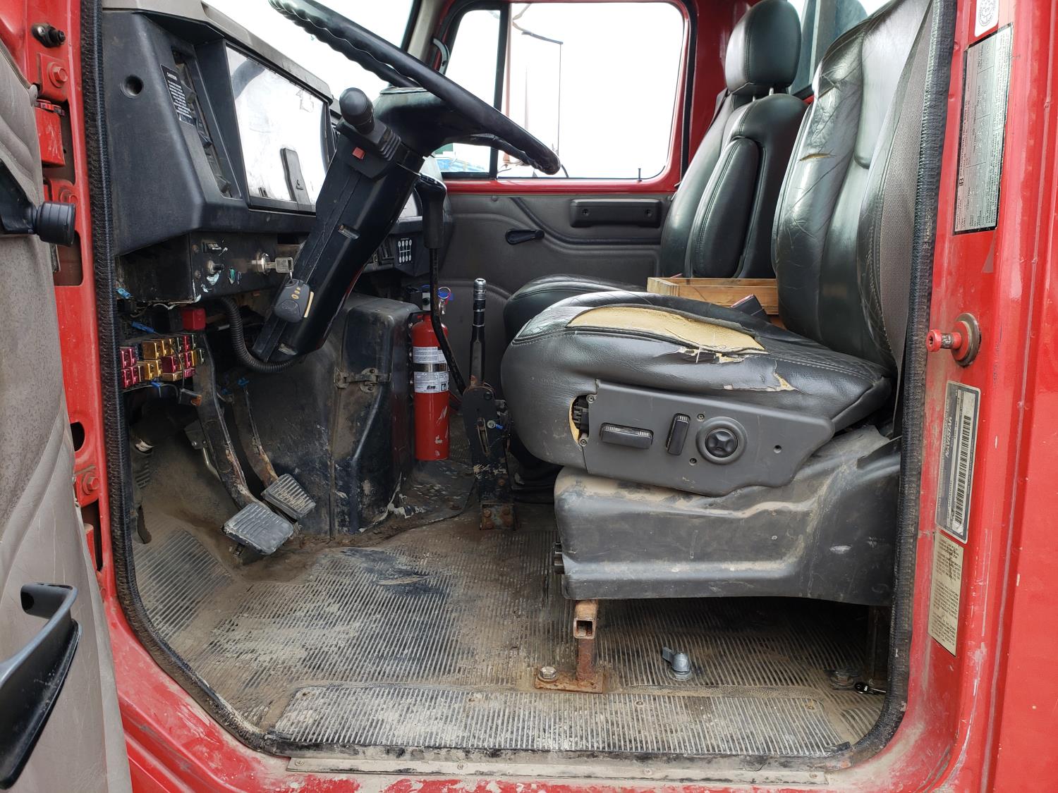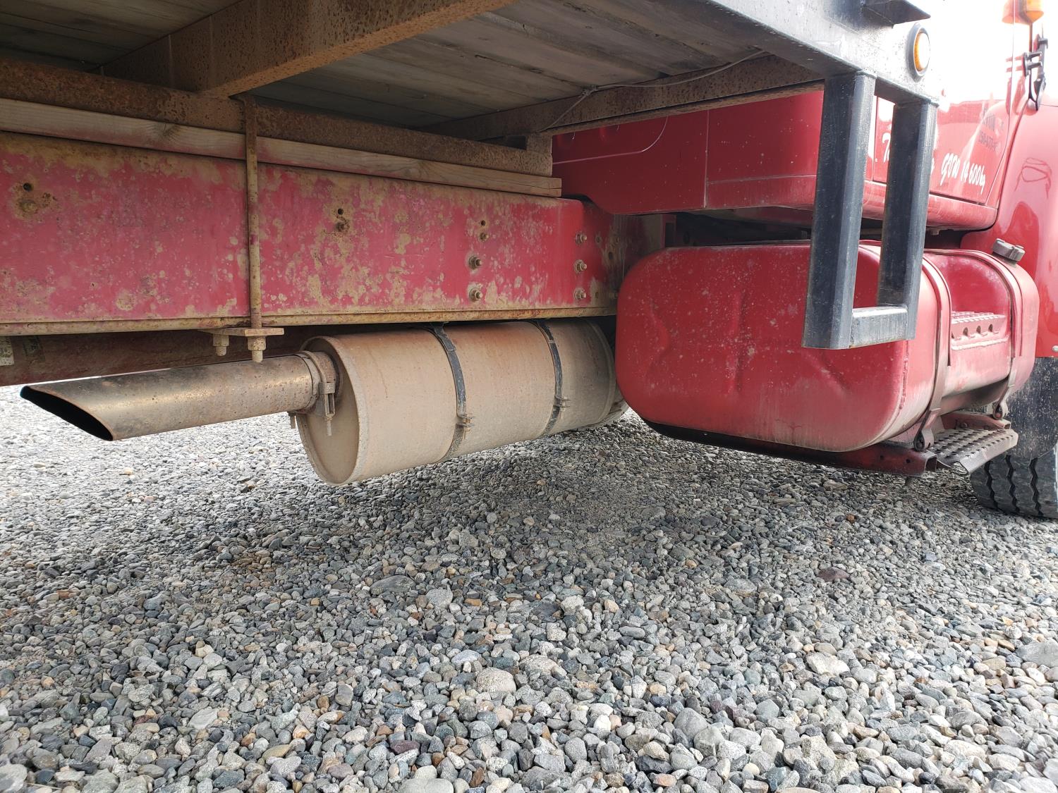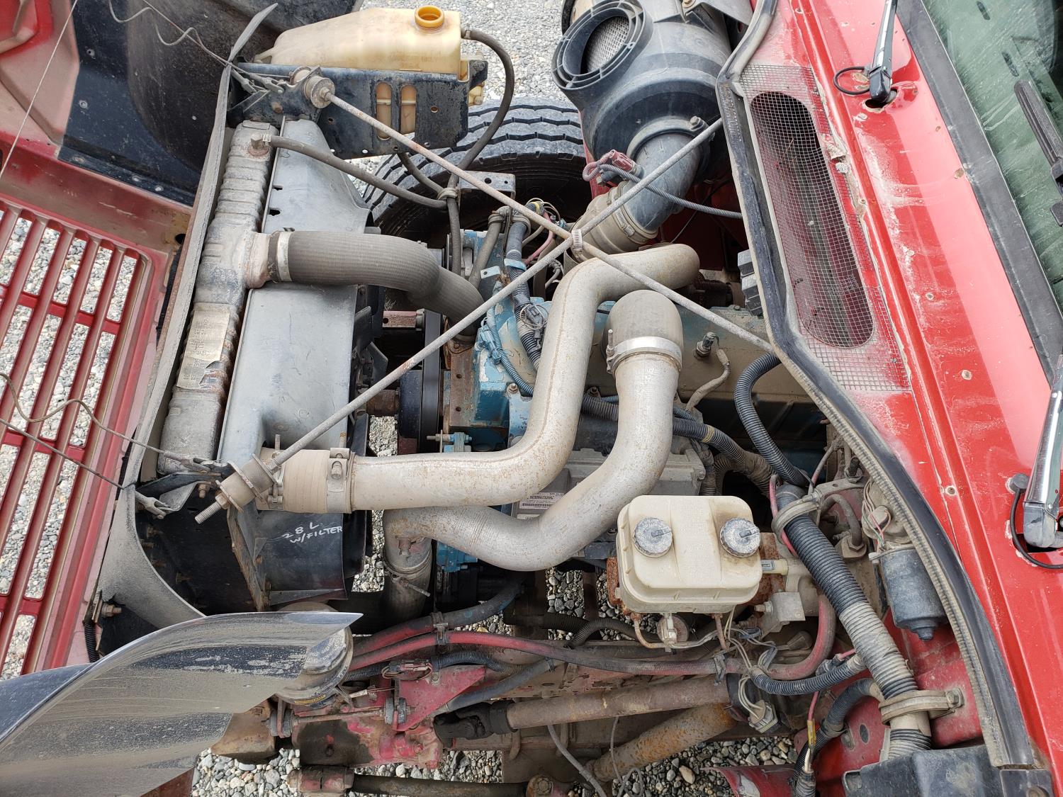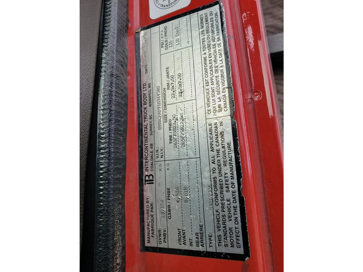 International DT466E 7.6 L 6 cylinder diesel engine, 7 speed manual transmission, 23 ft deck, spring suspension, 10,000 lb front axle, 18,999 lb rear axles, 254 inch WB, 11R22.5 tires