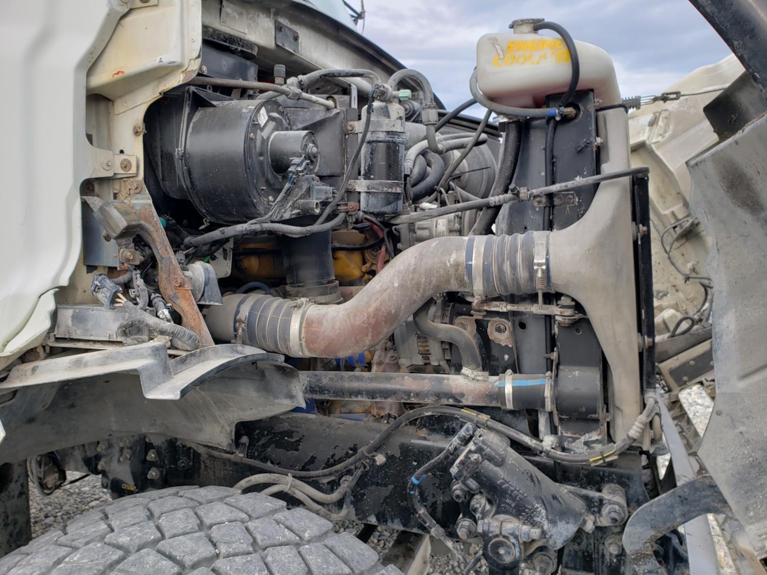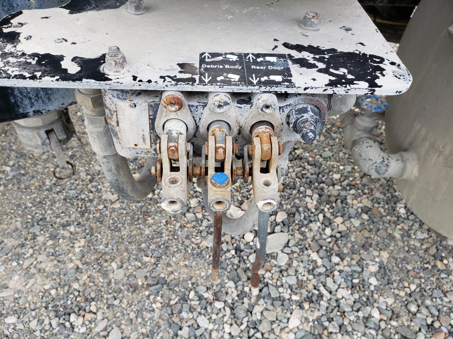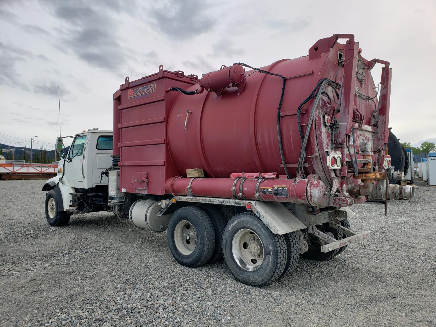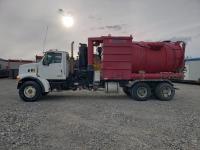 Caterpillar C12 12.0 L 6 cylinder 380 HP diesel engine, Eaton Fuller 9 speed manual transmission, Steel Debris tank, Dual PTO, Full Open Tailgate, 7 inch Suction Hose, Blower, spring suspension, 20,000 lb front axle, 44,000 lb rear axles, 268 inch WB, 425/65R22.5 front tires, 11R22.5 rear tires
