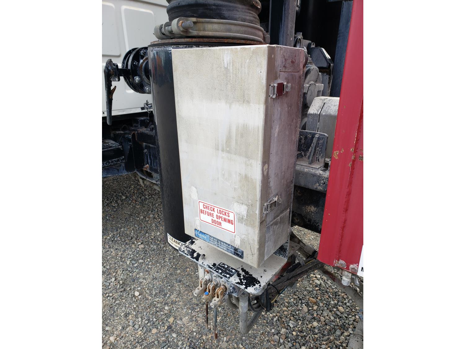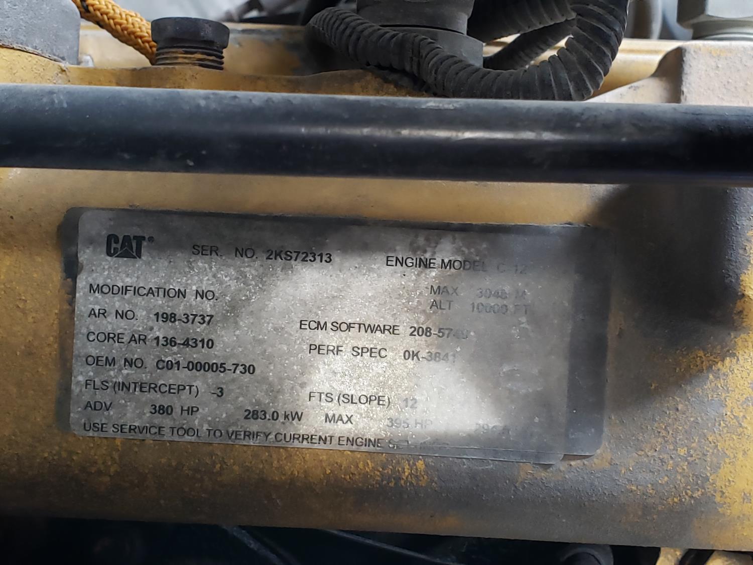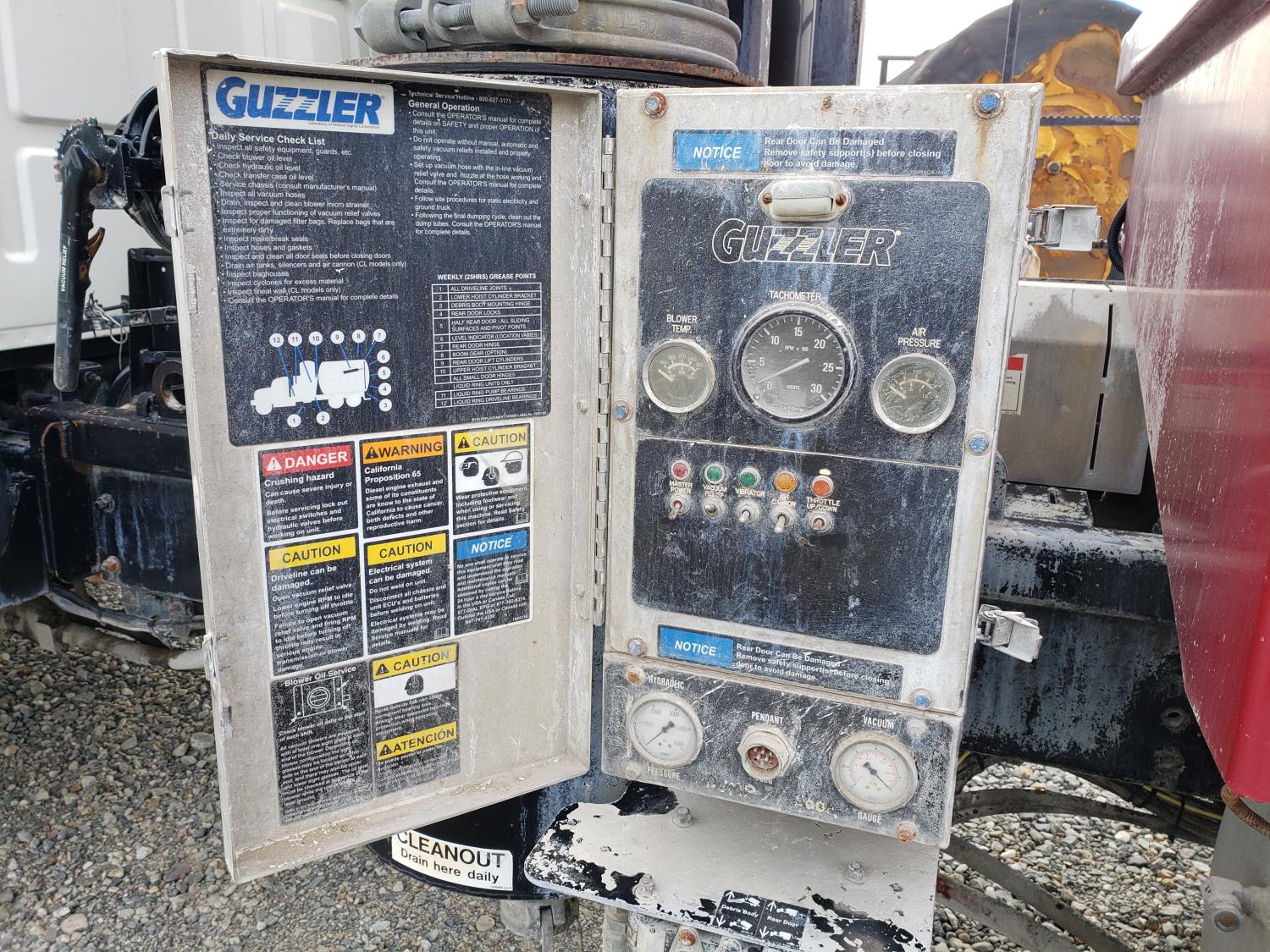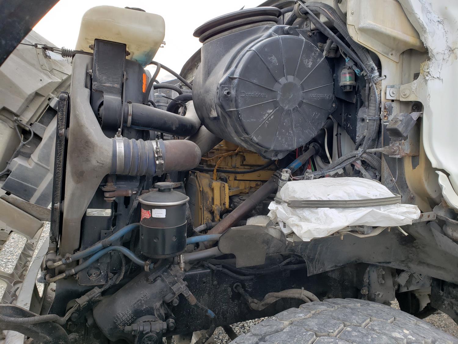 Caterpillar C12 12.0 L 6 cylinder 380 HP diesel engine, Eaton Fuller 9 speed manual transmission, Steel Debris tank, Dual PTO, Full Open Tailgate, 7 inch Suction Hose, Blower, spring suspension, 20,000 lb front axle, 44,000 lb rear axles, 268 inch WB, 425/65R22.5 front tires, 11R22.5 rear tires
