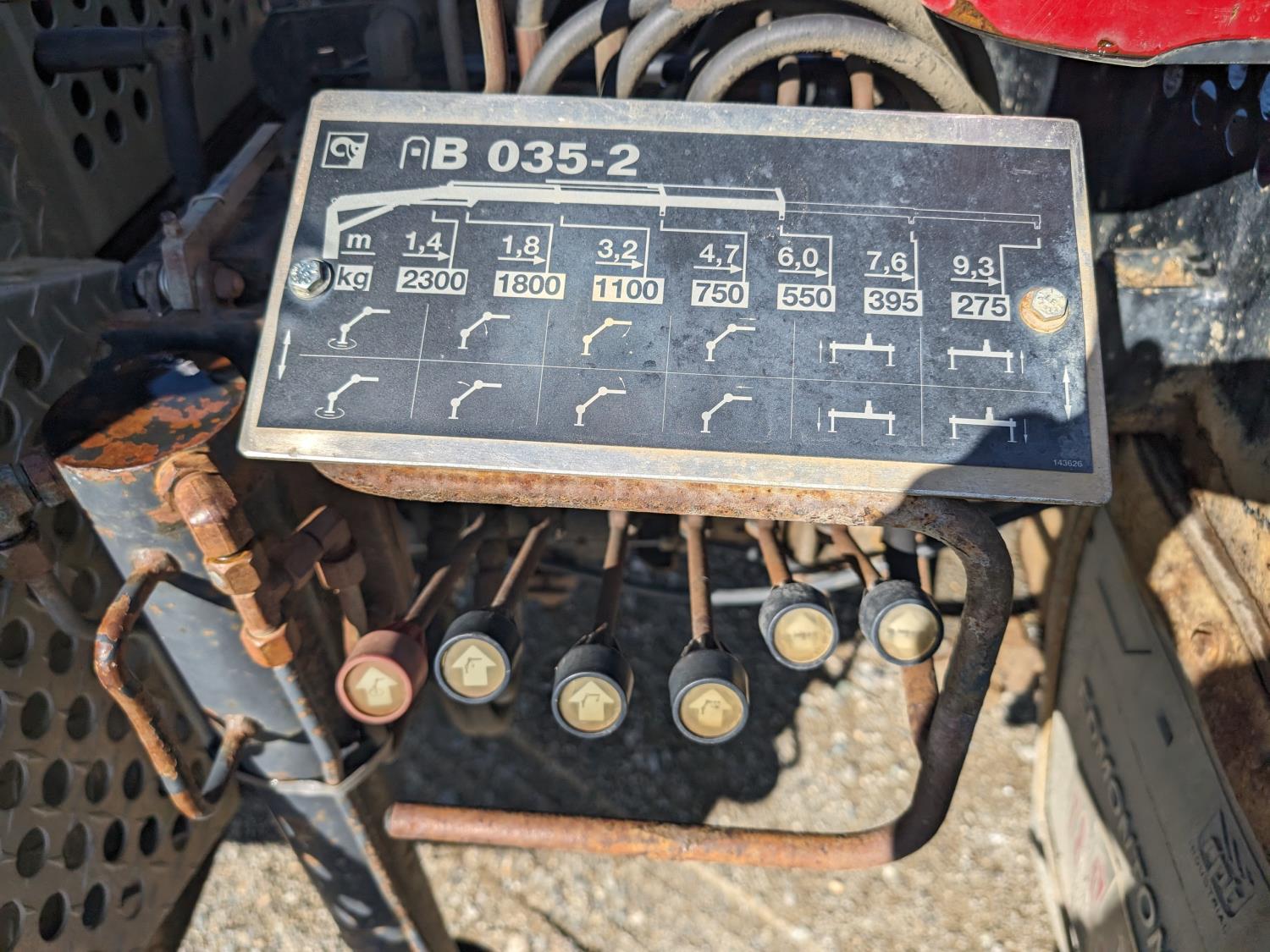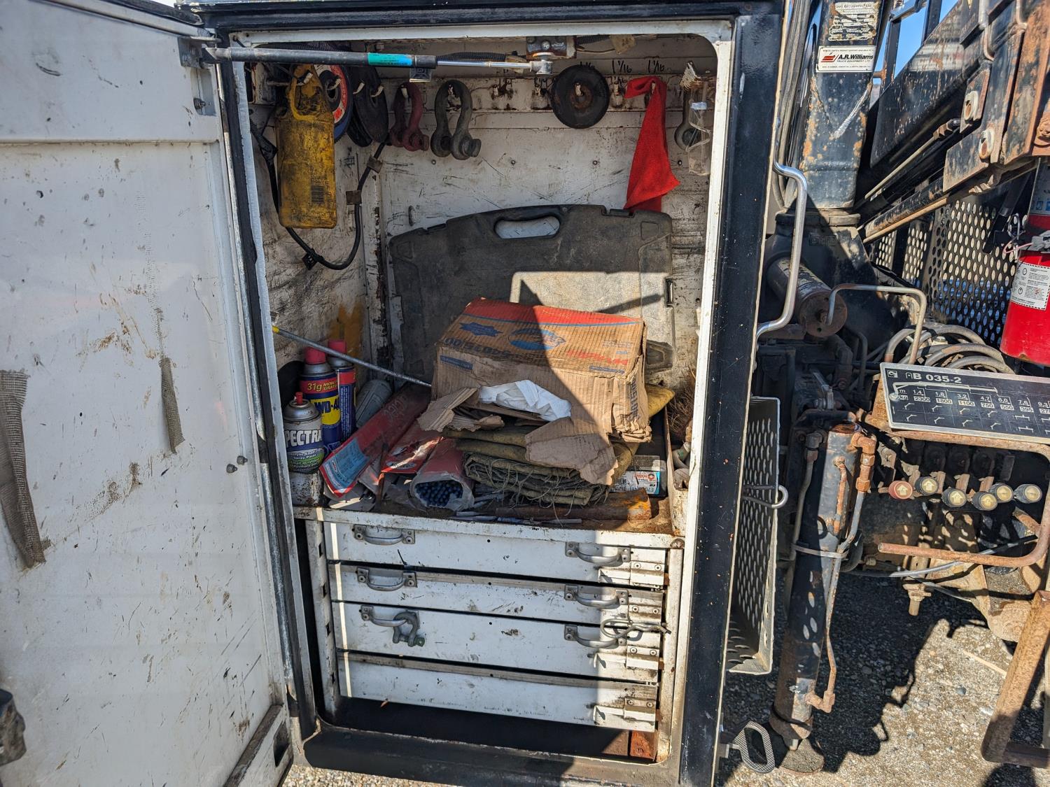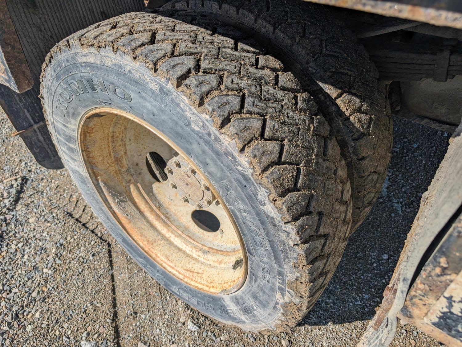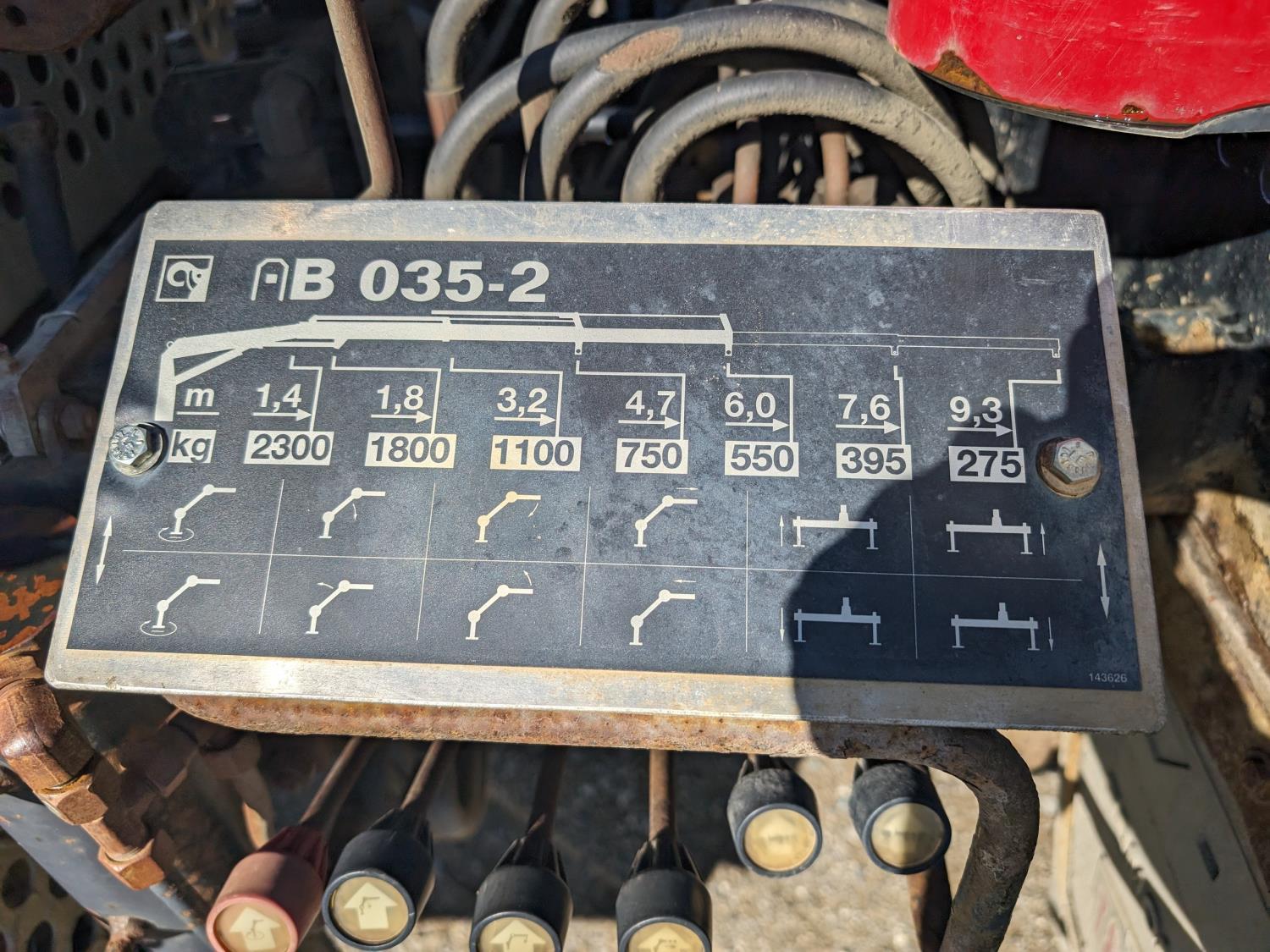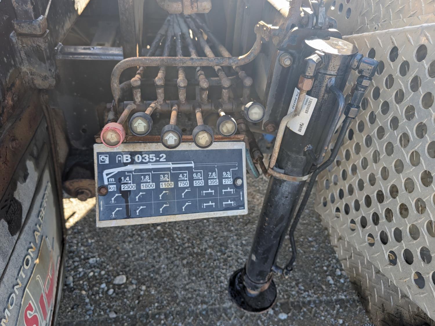 6.7 L diesel engine, automatic transmission, 94 inch x 74 inch deck, Hiab 035 3 section 20 ft knuckle crane, outriggers, dual controls, 225/70R19.5 tires