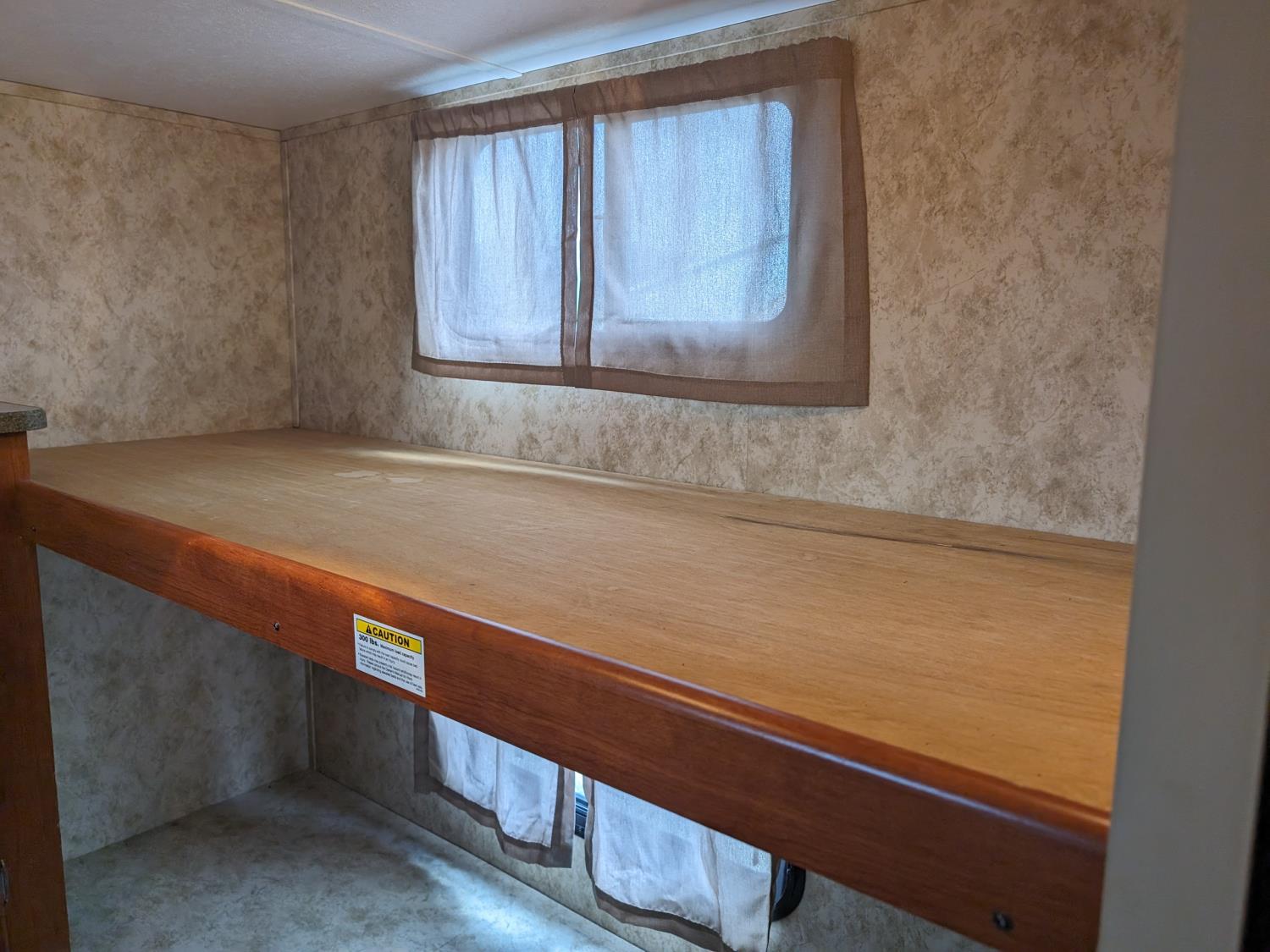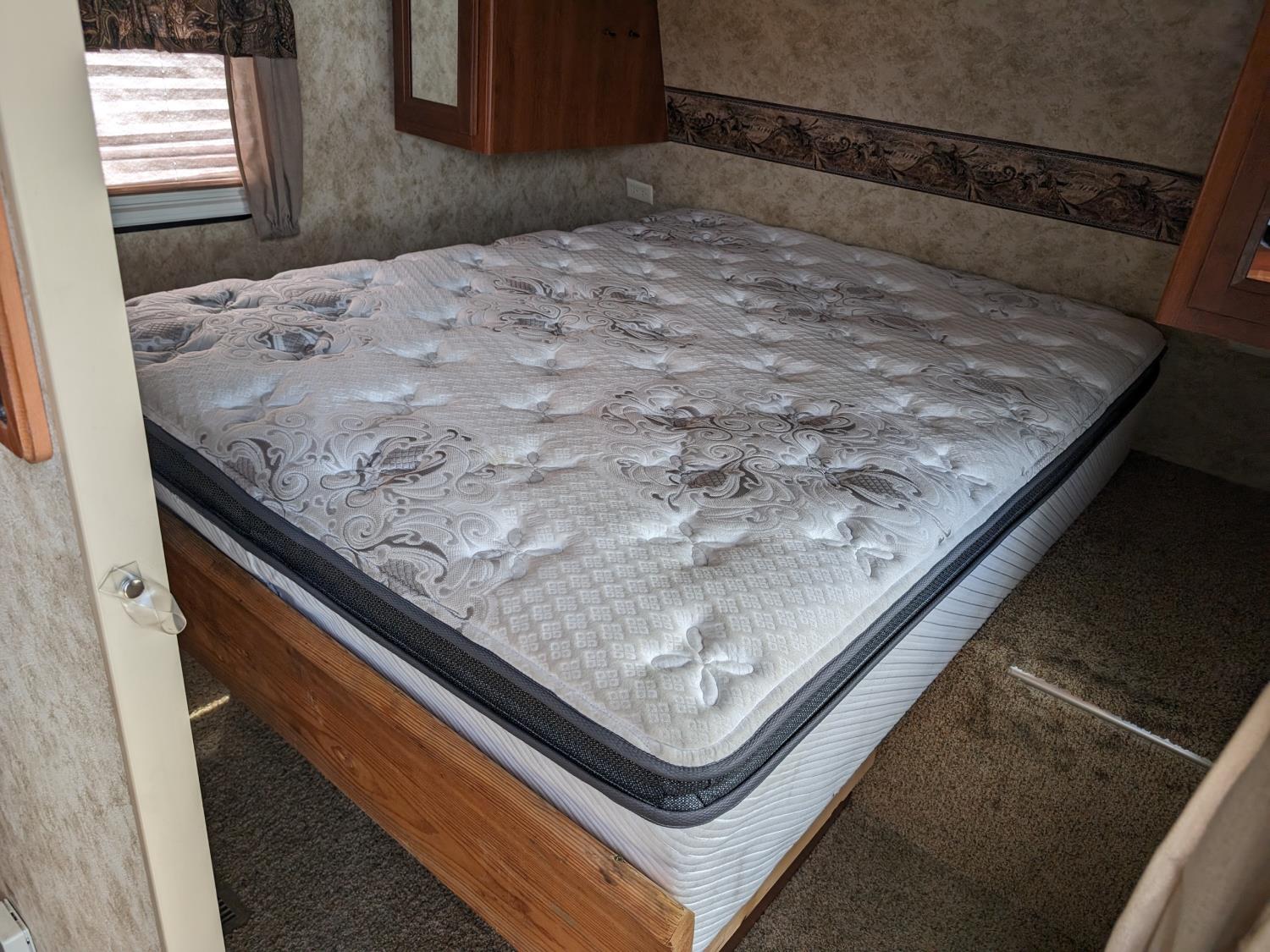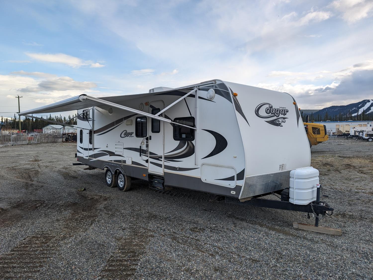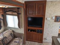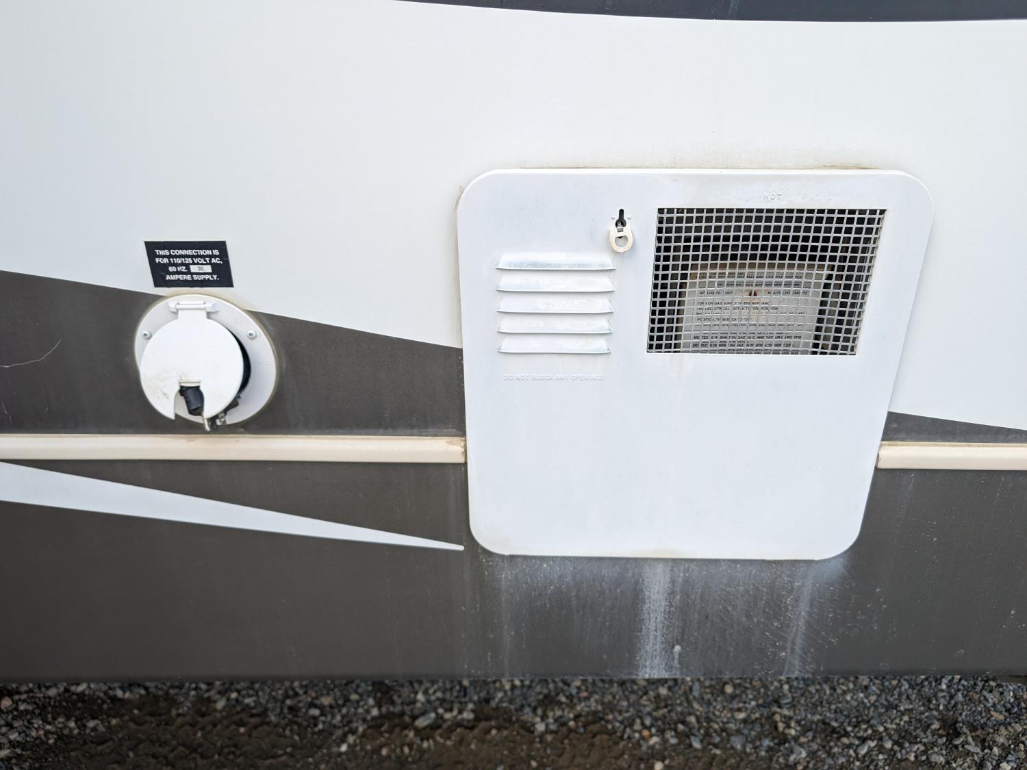 Sleeps 8, stove, fridge, microwave, full bath, master bedroom, bunk beds, A/C, outdoor shower, 1 slide, power awning, spring suspension, electric brakes, rear bike rack, 225/75R15 tires