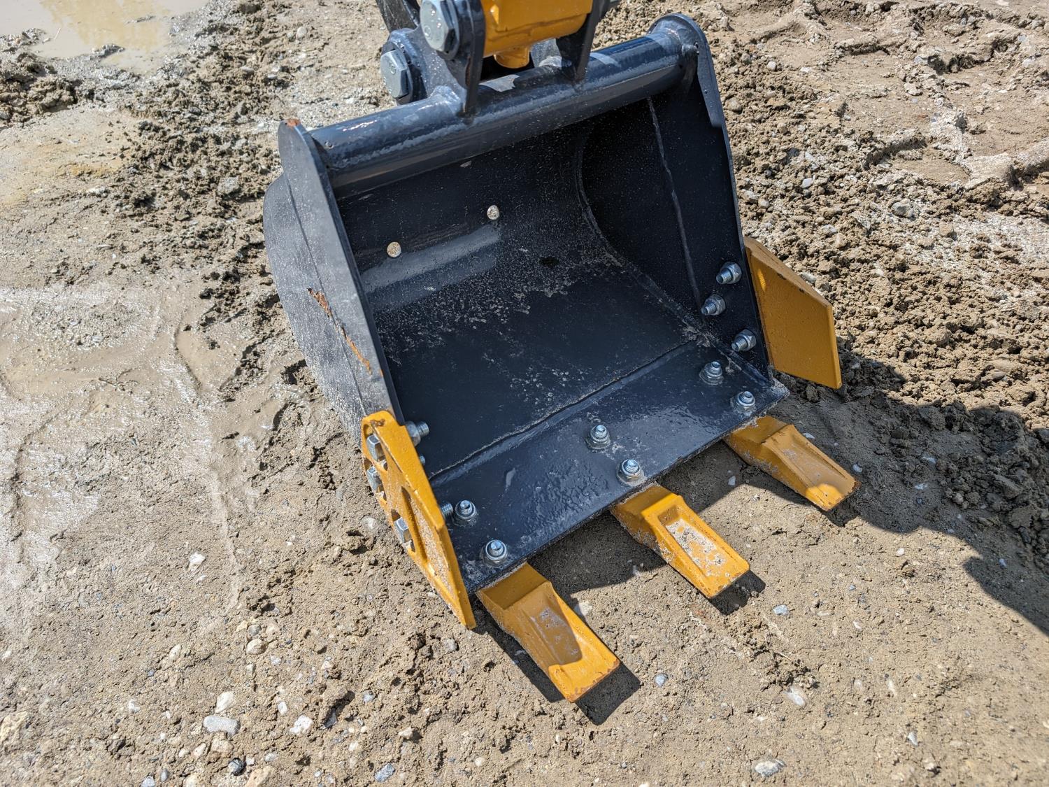 Open station, pilot controls, Briggs & Stratton 13.5 HP gas engine, LED work lights, 16 inch dig bucket, manual coupler, manual thumb, 1 auxiliary hydraulics, 31 inch stick, swing boom, backfill blade, 35 1/2 inch back blade, 7 inch rubber tracks