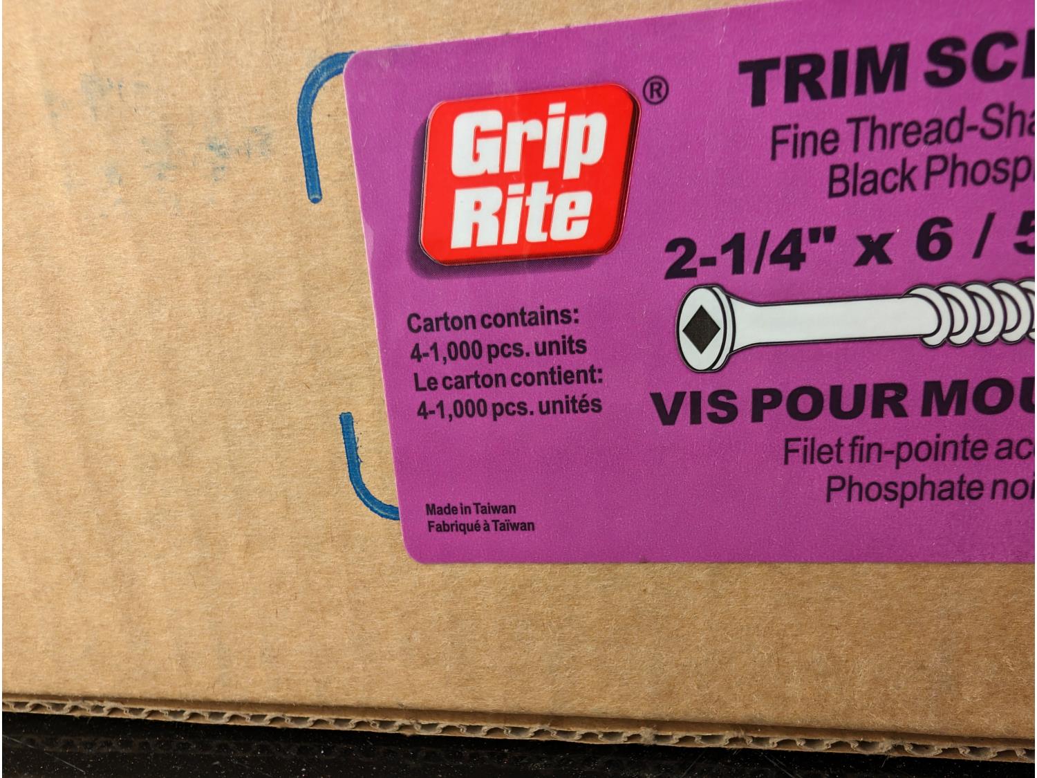 601 44,000 ± Grip Rite 2-1/4 Inch #6 Screws (Unused)