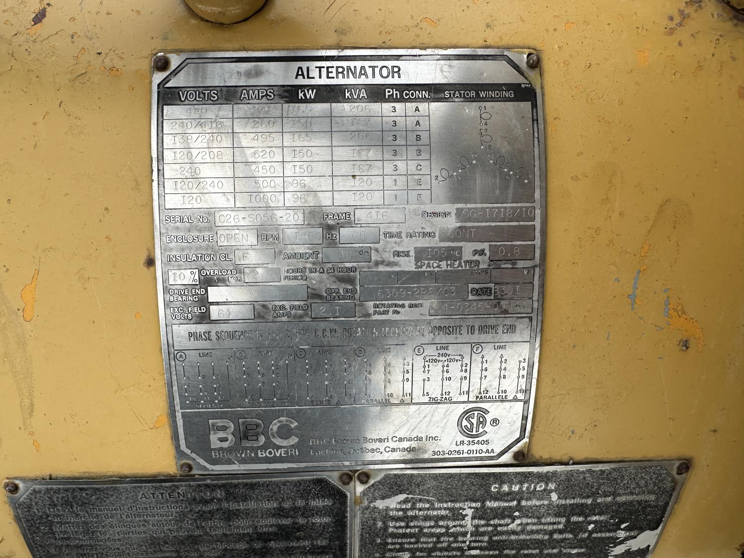 377 96 Kw Diesel Generator (Inoperable)