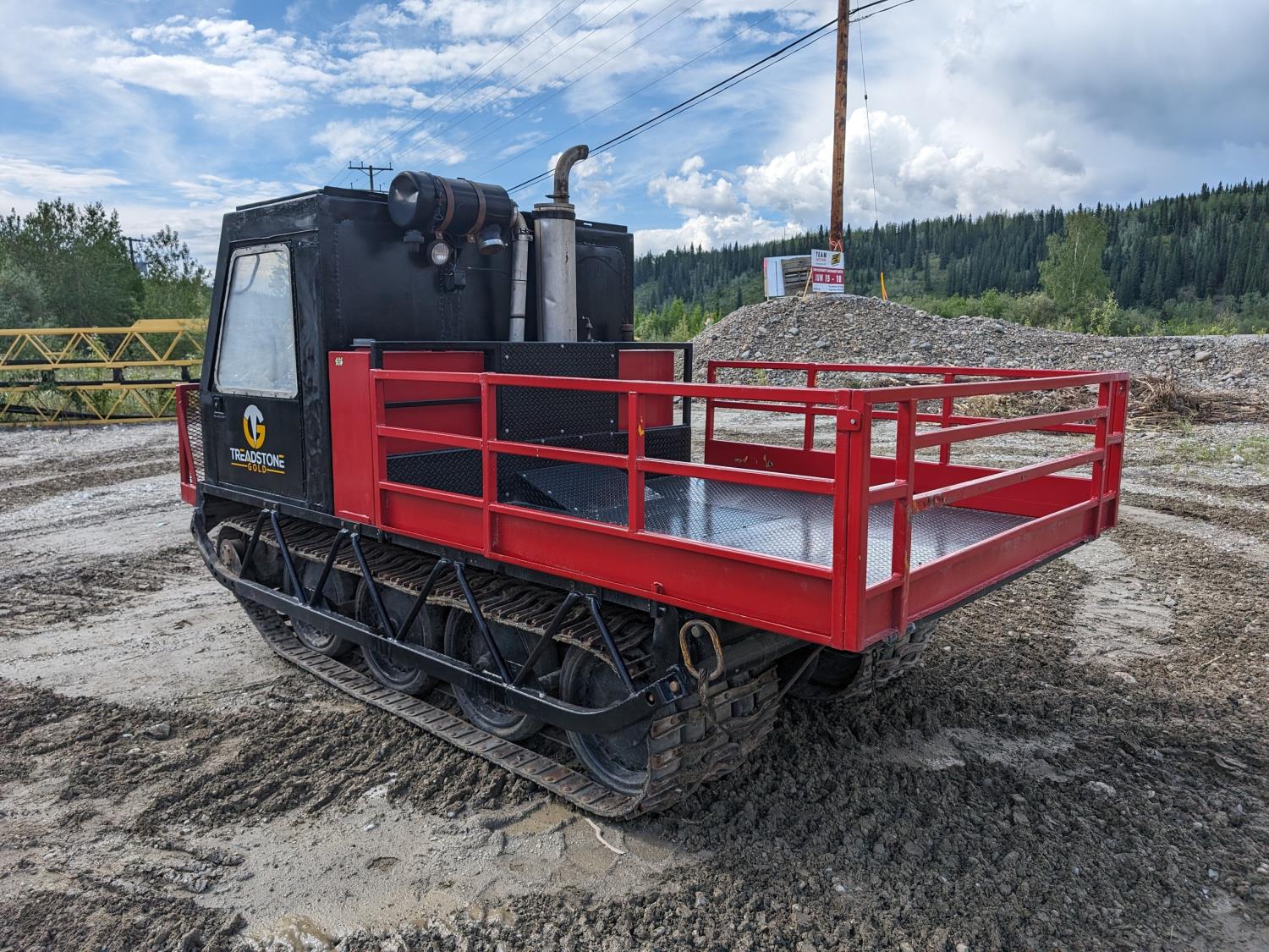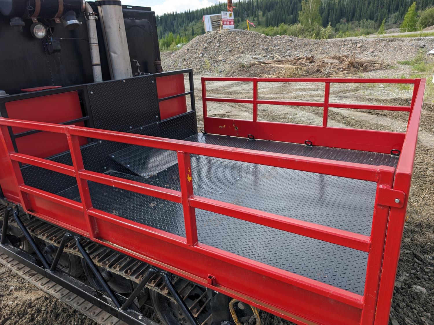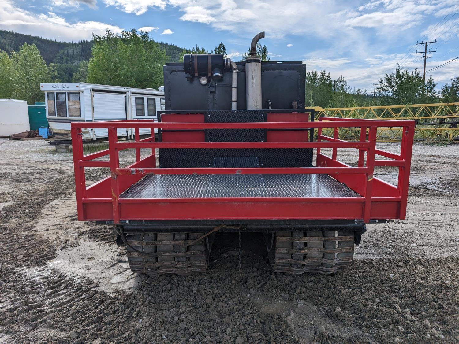 Cummins 4 cylinder diesel engine, manual transmission, differential steering, Warn 15,000 lb winch, 7 ft x 7 ft 3 inch deck, 28 inch rubber tracks w/ steel lugs