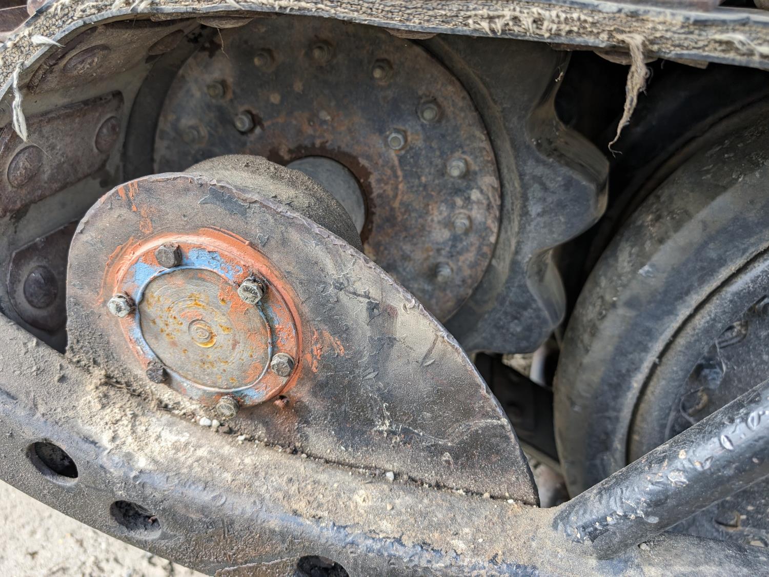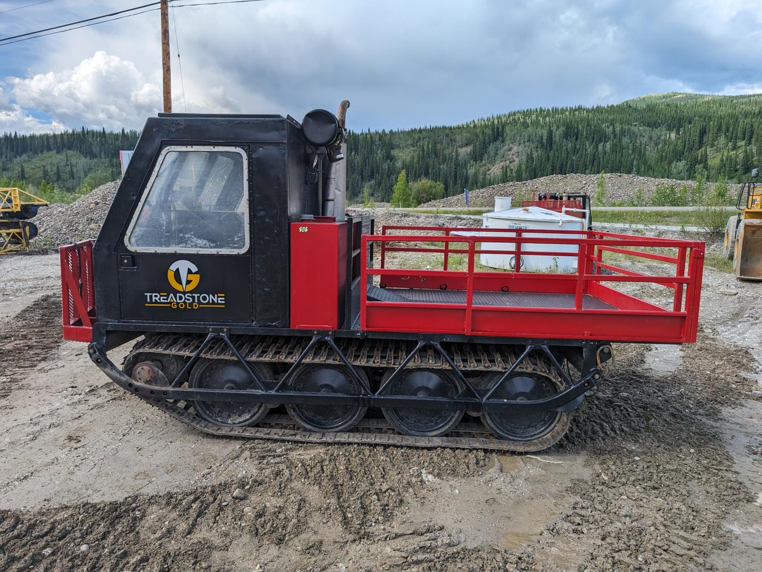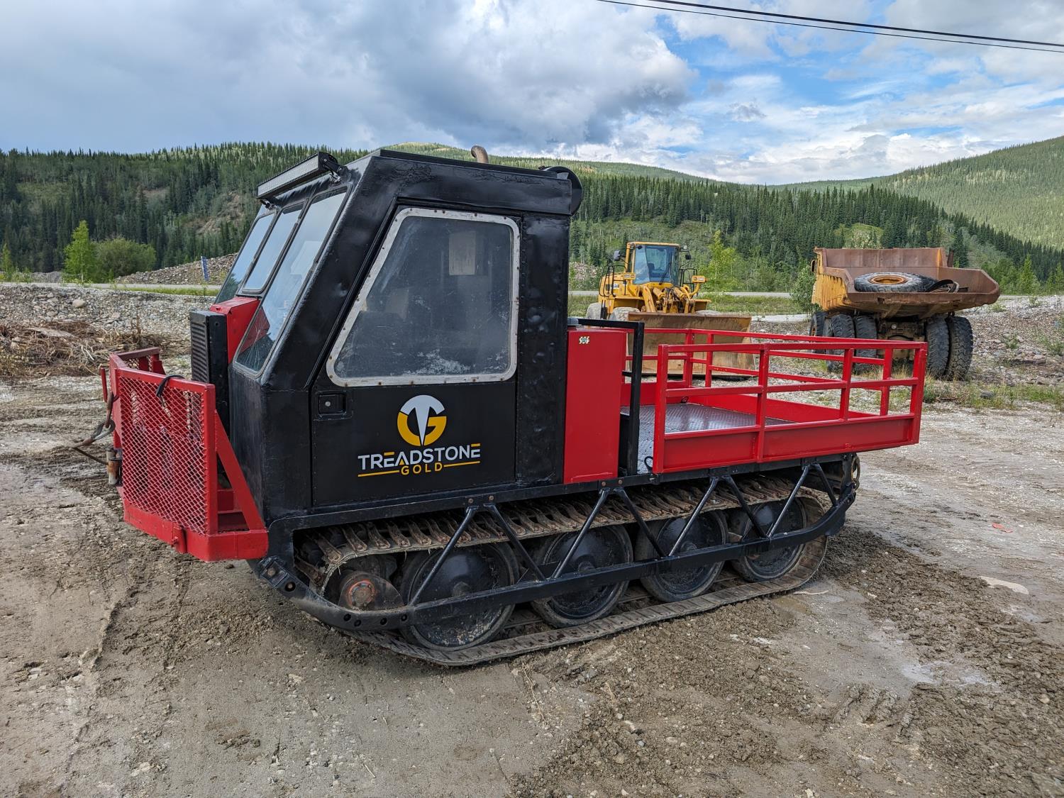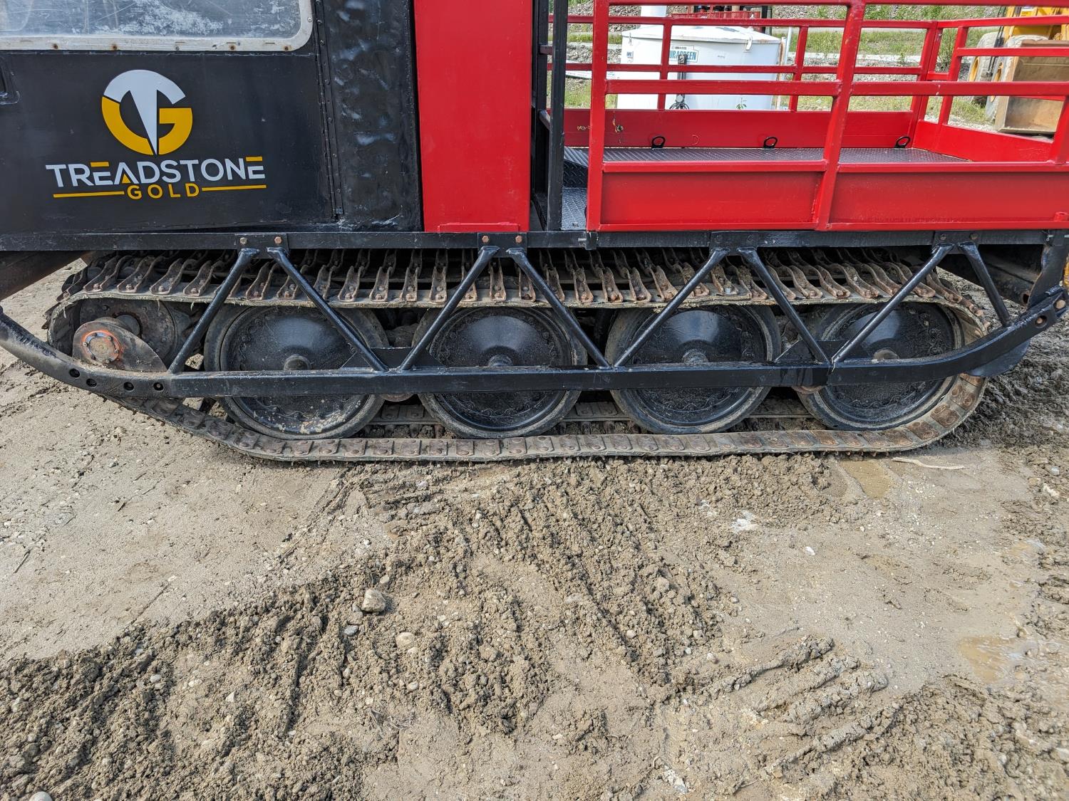 Cummins 4 cylinder diesel engine, manual transmission, differential steering, Warn 15,000 lb winch, 7 ft x 7 ft 3 inch deck, 28 inch rubber tracks w/ steel lugs