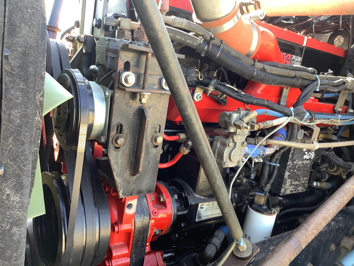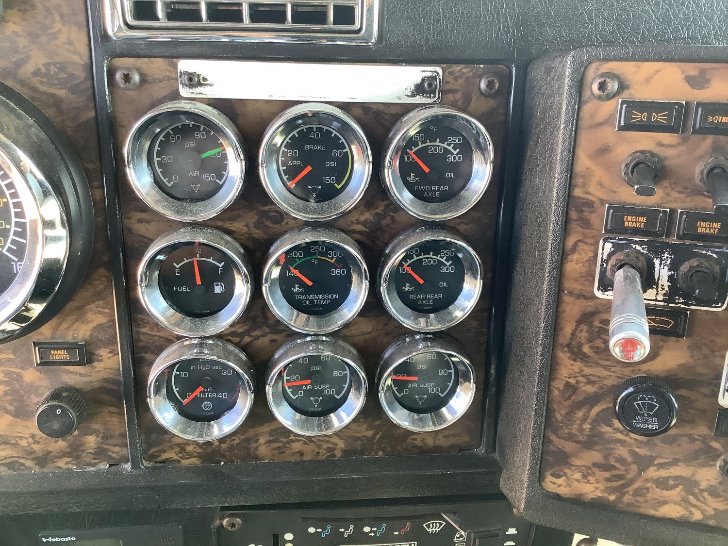Cummins N-14 6 cylinder 460 HP engine, engine brake, Eaton Fuller 18 speed manual transmission, 42 inch sleeper, A/C, removable sleeper, beacons, head rack, rear live roll, tool box , air ride suspension, 16,000 lb front axle, 52,000 lb rear axles, full lockers, 5.38 ratio, all aluminum wheels, 385/65R22.5 front tires, 11R24.5 rear tires
