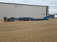 Hydraulic detachable neck, flip neck extension for jeep, self contained hydraulic system with electric start Honda gas engine, 20X8-1/2 ft main deck, swing out extensions, boom well, pin joint deck, swing out and rear strobe lights, aluminum wheels, on trailer and booster. 275/70R22.5 tires Both sell as one unit