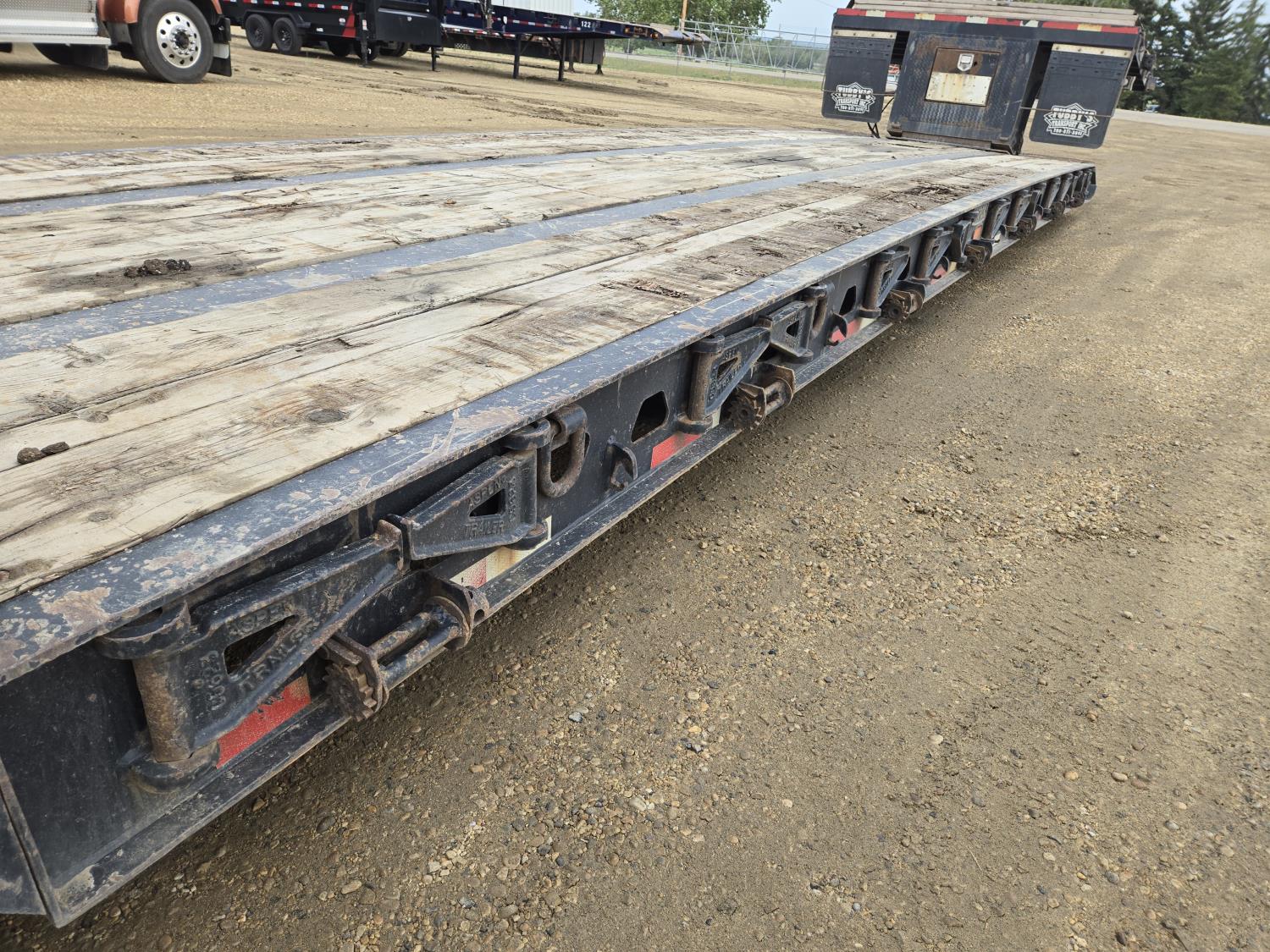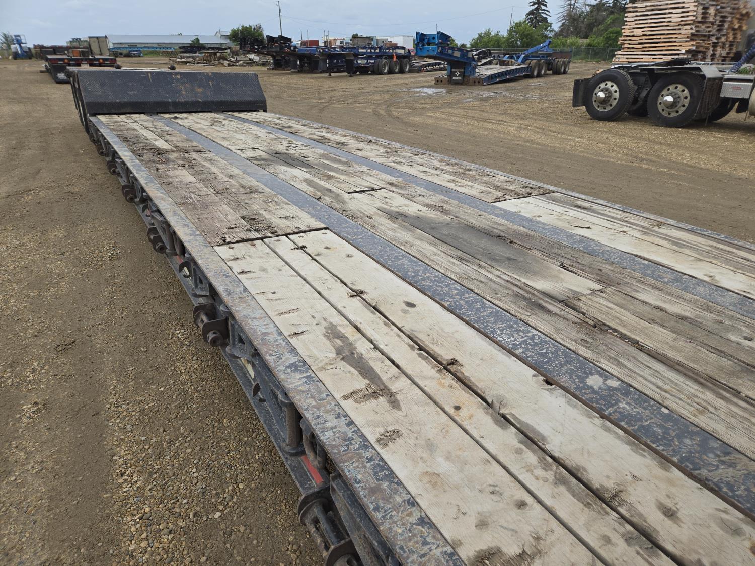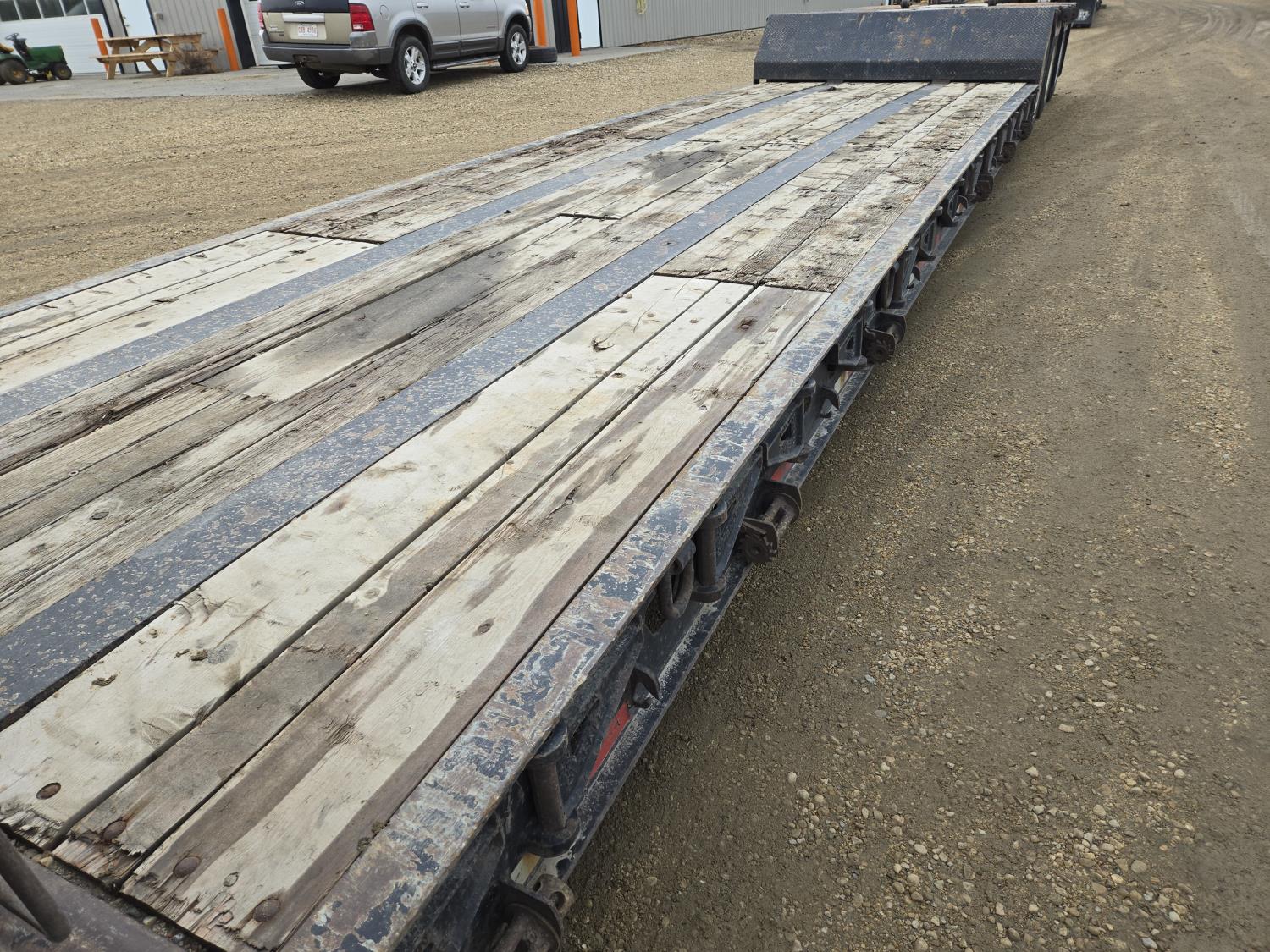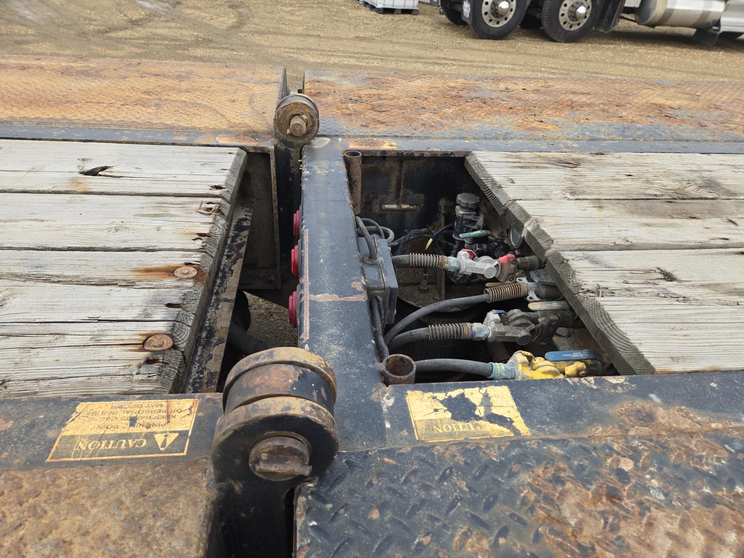 flip neck extension for jeep, 28 ft main deck and 13 ft rear deck, 8-1/2 wide, 3 bar winch's, air ride suspension, wide load and rear strobe lights, swing outs for wide loads, 275/70R22.5 tires, Note the rear third axle is removable or can flip over