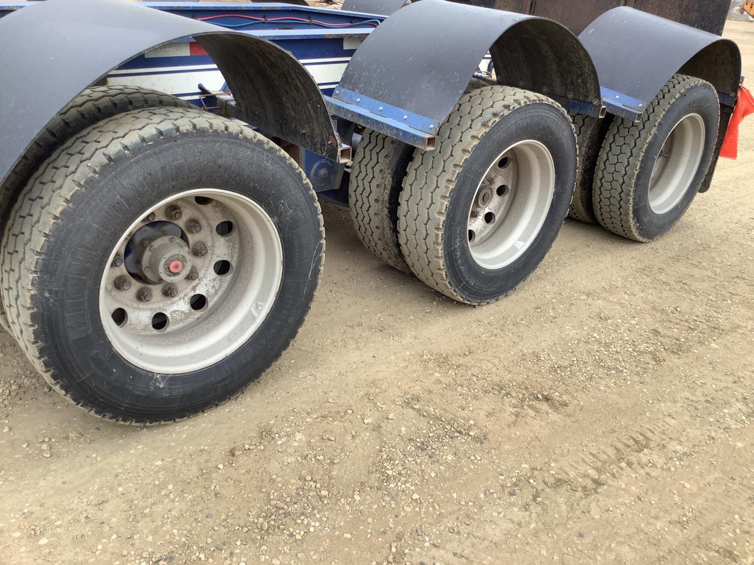 10- wide with swing out extension, self contained hydraulic system to operate the flip neck extension for the TRI/A air ride jeep and the hydraulic detached neck, air ride suspension, aluminum rims on 275/70R/22.5 tires, swing out and rear strobe lights, pin section main deck, rear boom well, rear plumbing for the TRI/A rear booster with air ride, rear booster and jeep are on 275/70R/22.5 tires and aluminum wheels.