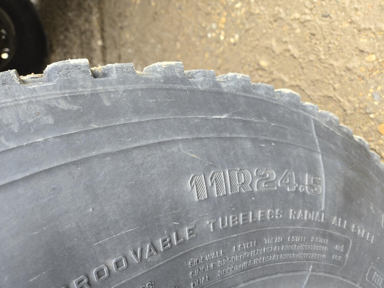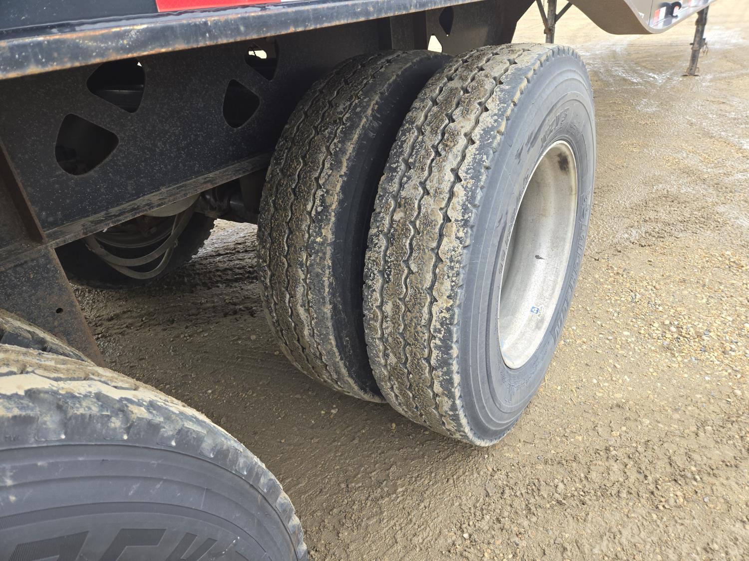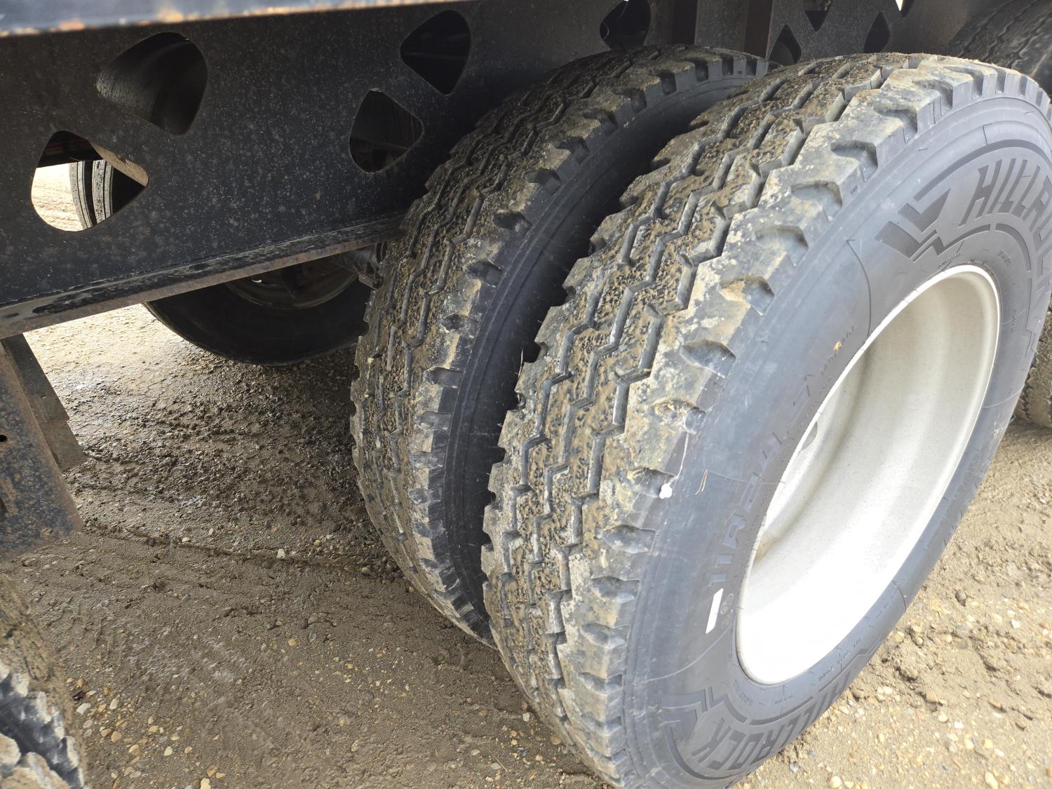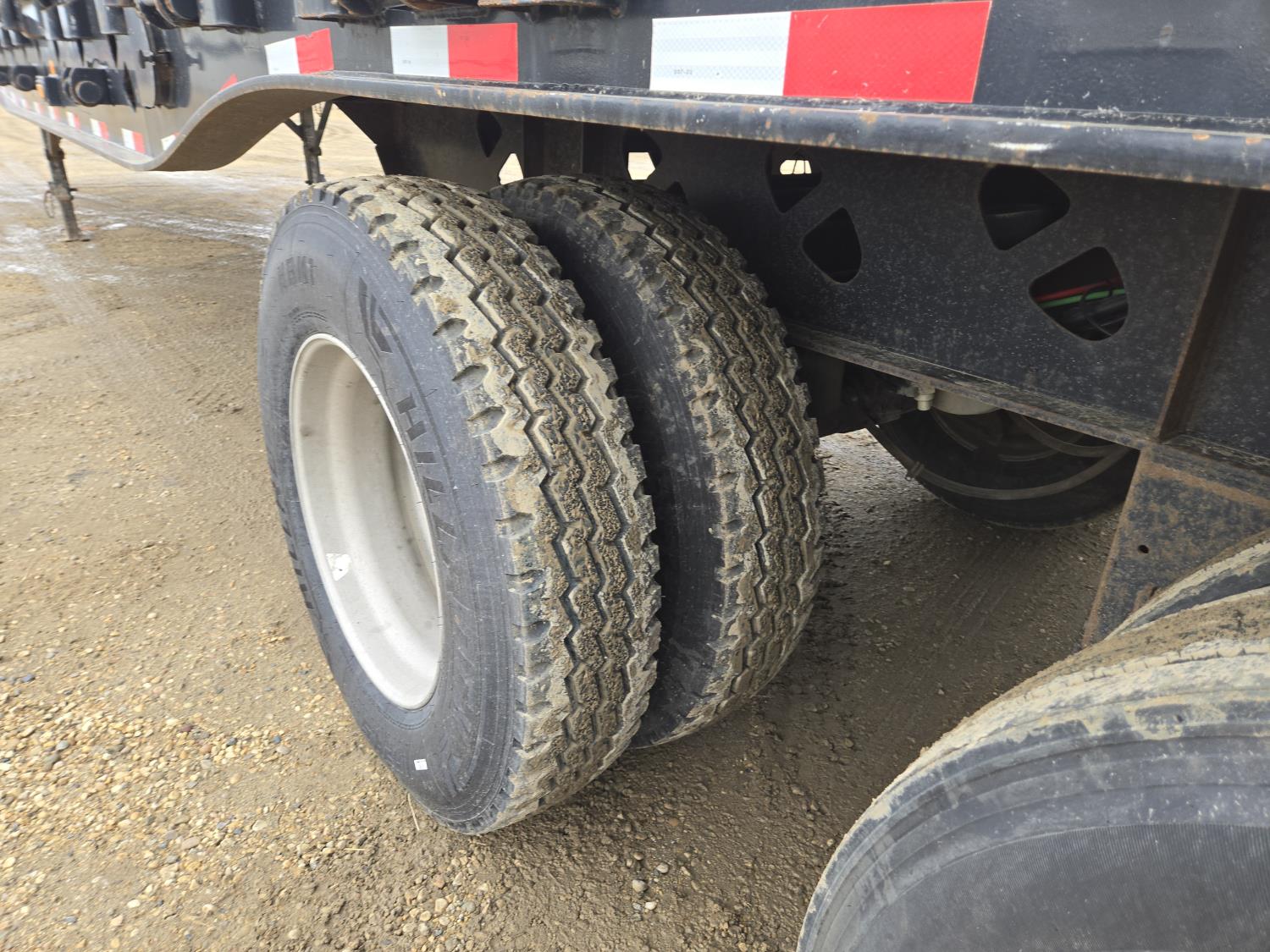 air ride suspension, center and rear live rolls, pin pockets, 3- Bar winch’s, plumbed for rear booster, folding landing gear, swing out and rear strobe lights, aluminum wheels, 11R24.5 tires