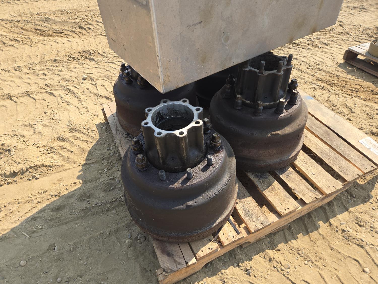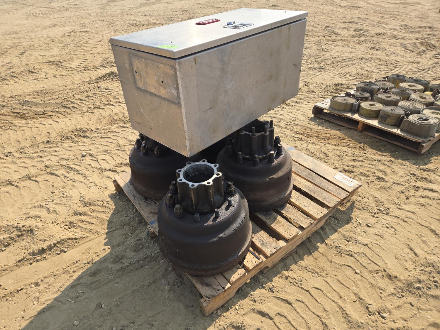 397 (4) Heavy Truck Brake Drums with Hubs & Ace Aluminum Tool Box
