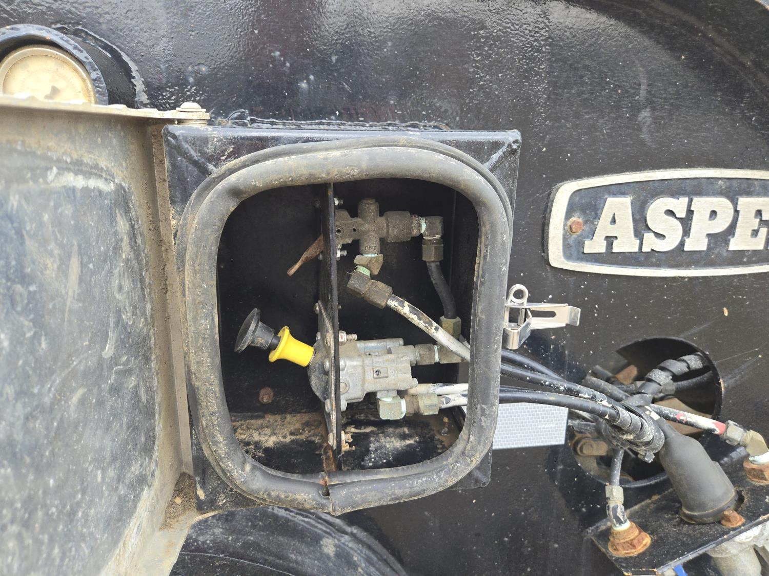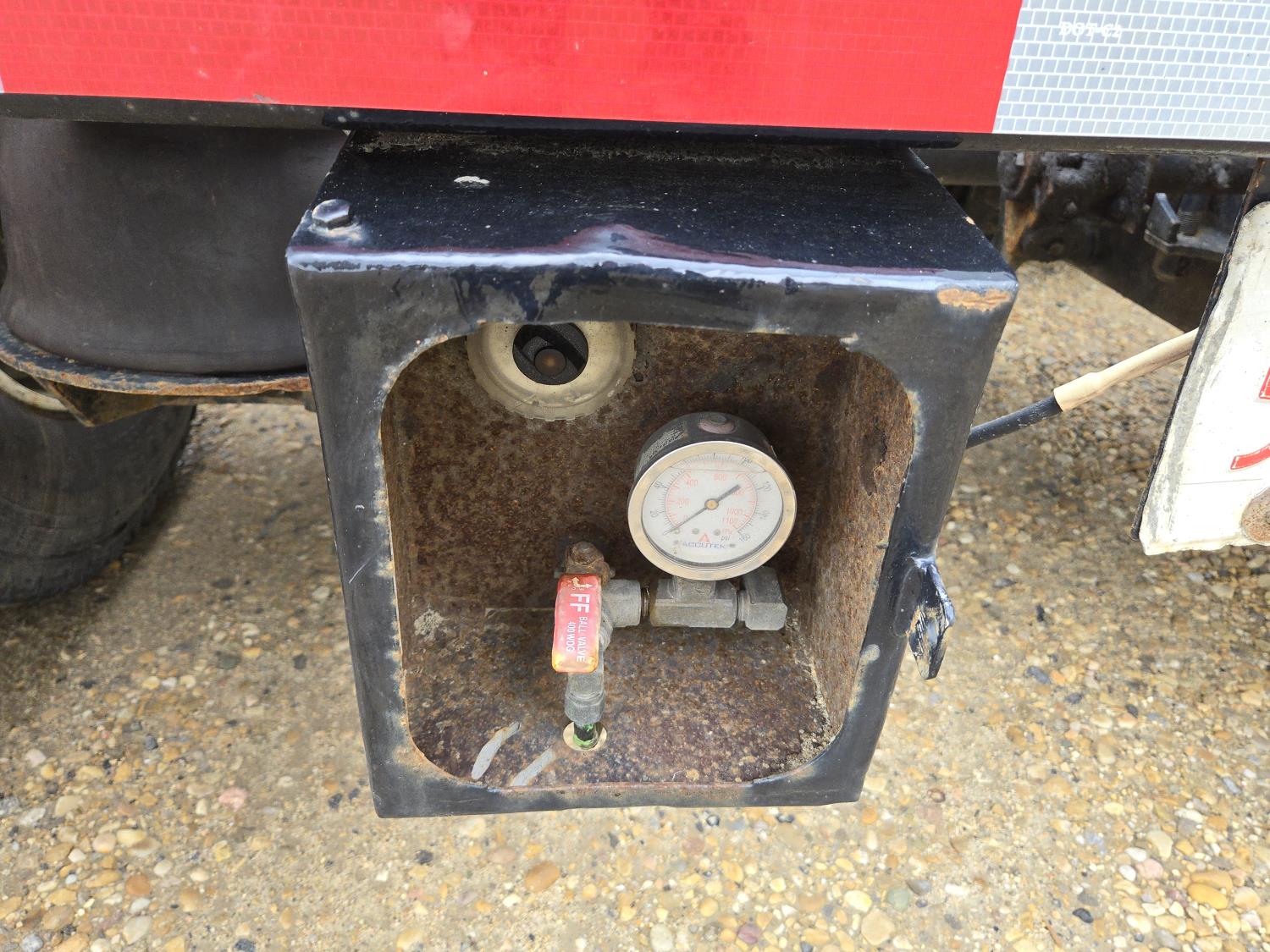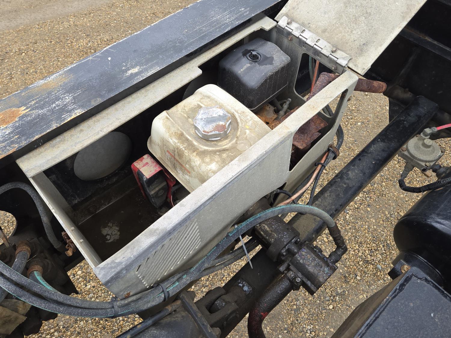 Hydraulic detachable neck, self contained hydraulic system with electric start Honda gas engine, 20X8-1/2 ft main deck, swing out extensions, pin joint main deck, 275/80R22.5 tires on the trailer, 2000 Aspen T/A rear booster, air ride suspension, aluminum wheels, 275/70R22.5 tires