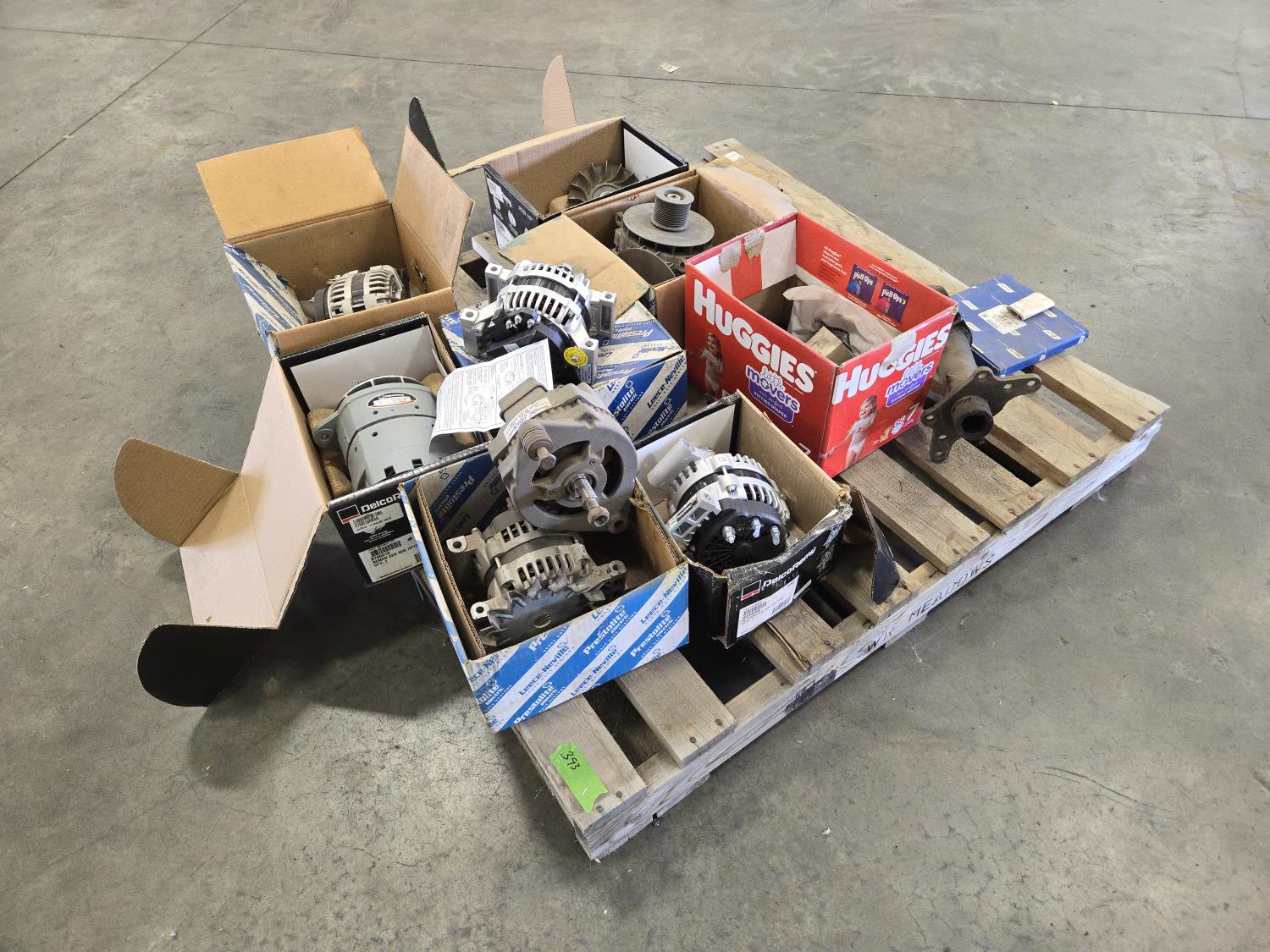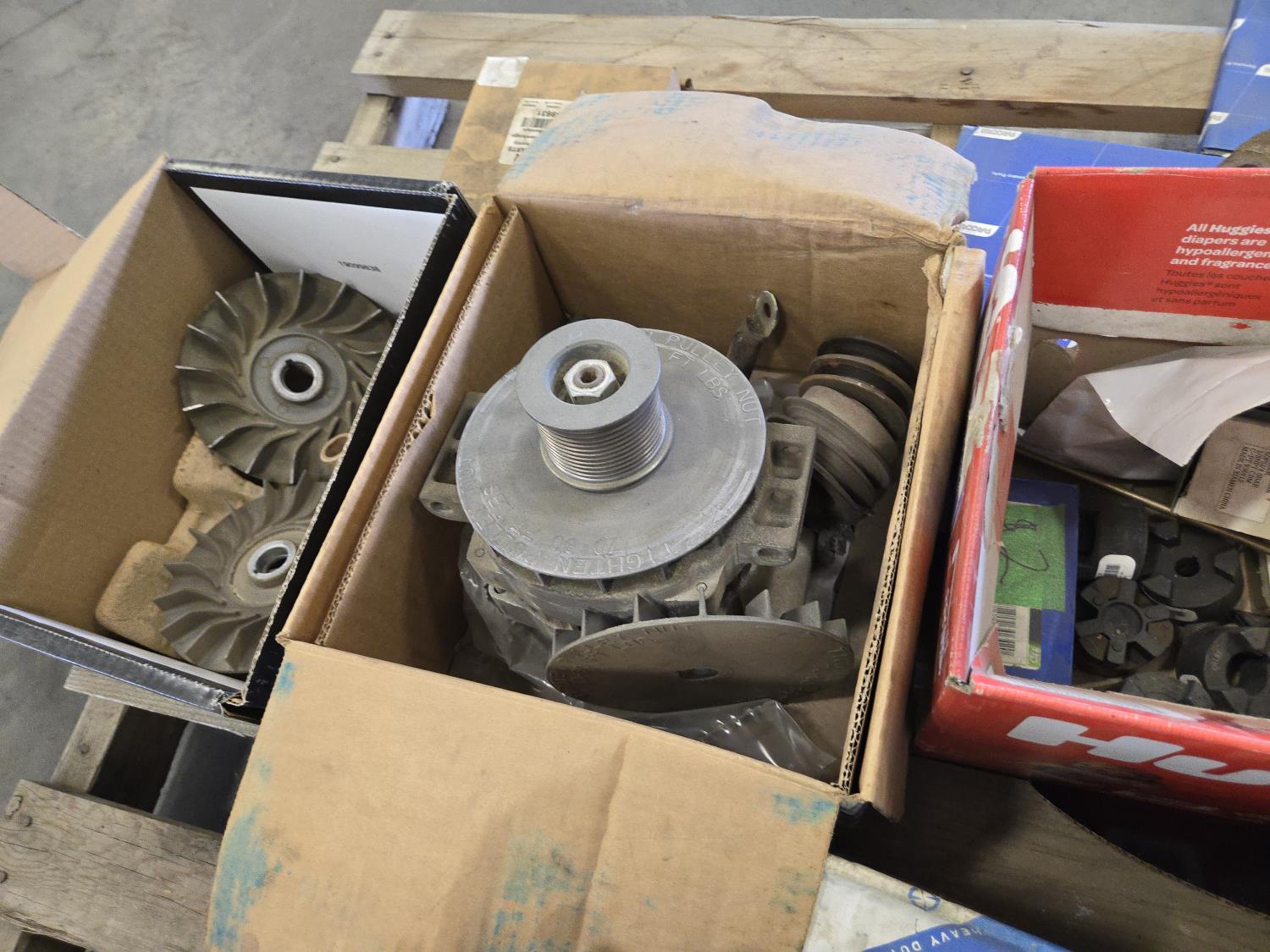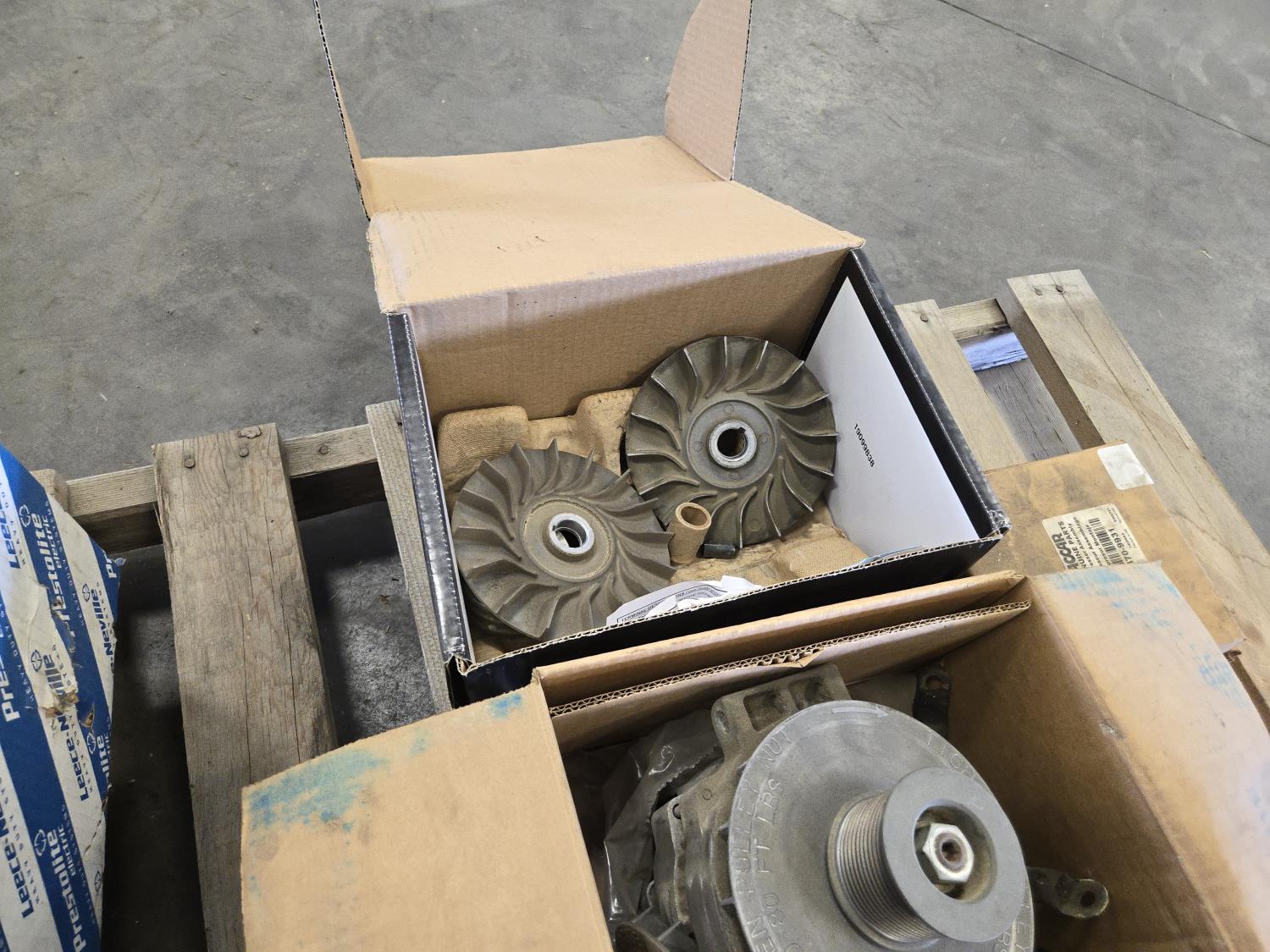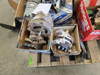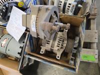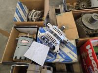 (4) unused alternators, (3) used alternators, fans, miscellaneous parts