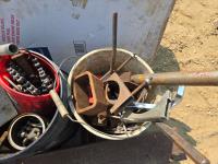 Hardware, roller chain, (2) large pipe wrenches, pipe cutter, pipe fitting & miscellaneous