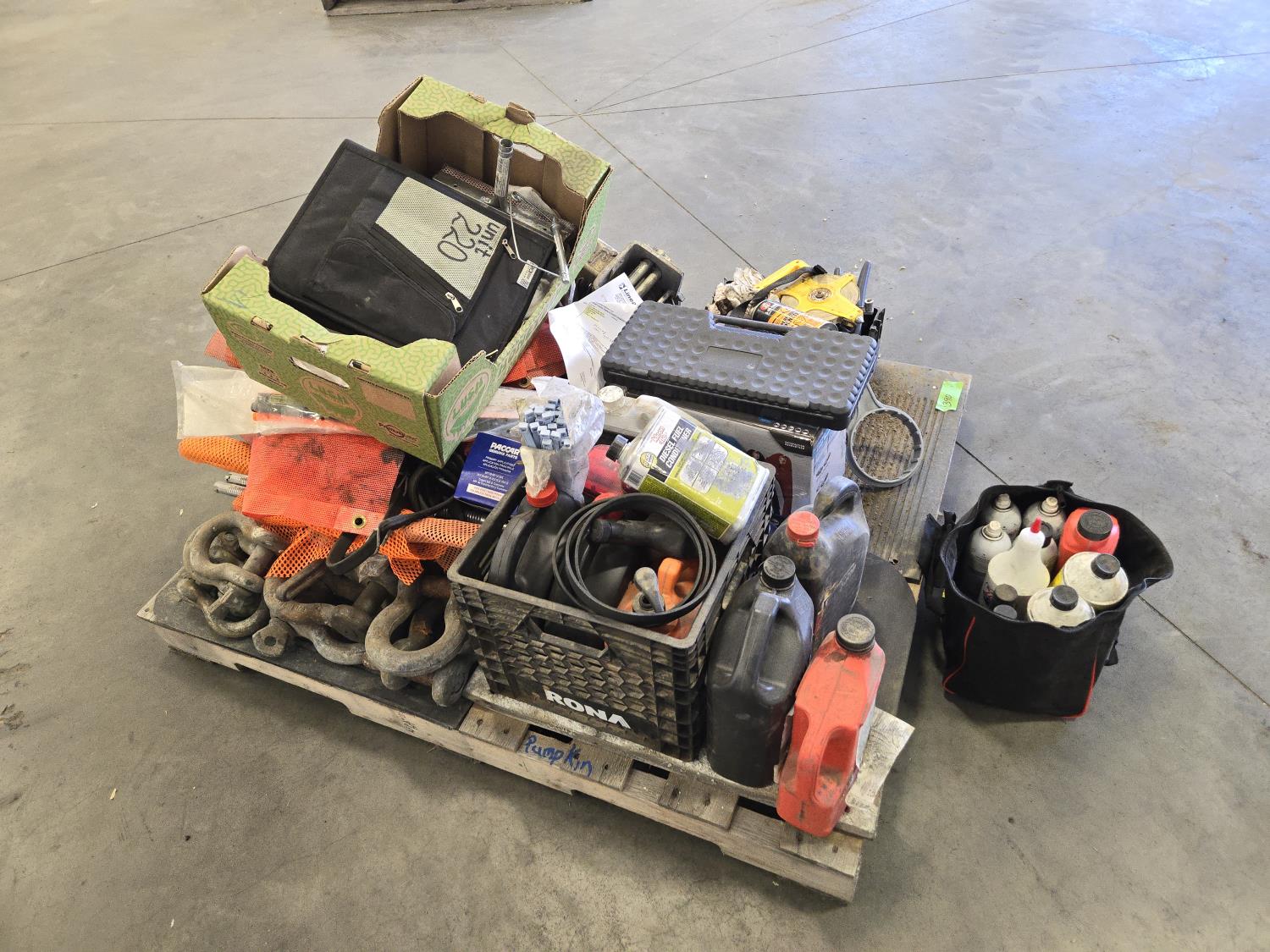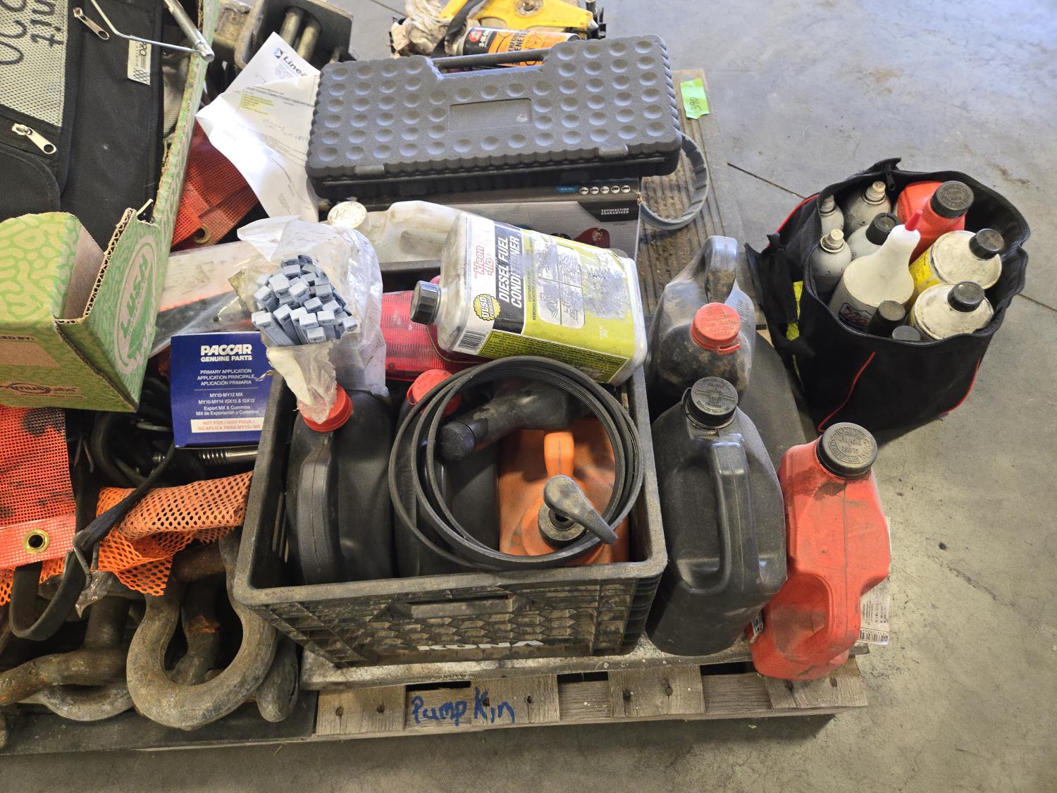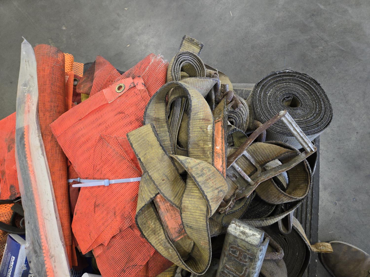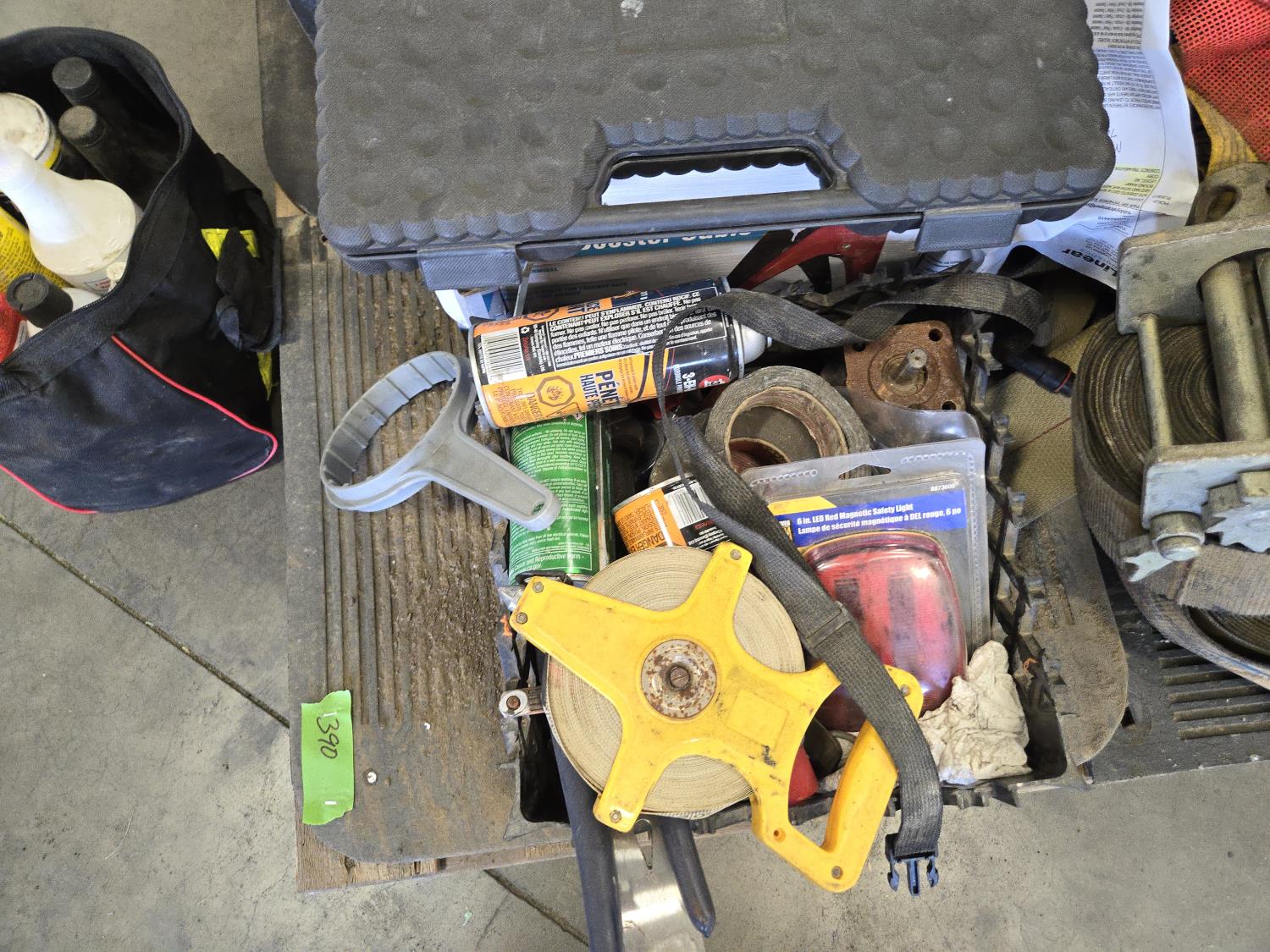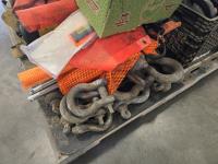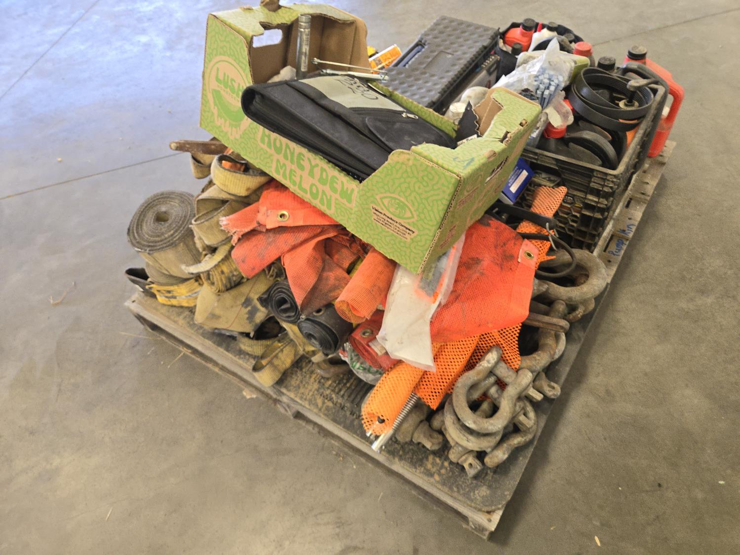 qty of shackles, shop fluids, booster cables, small socket set, miscellaneous hardware, load straps, zip ties