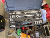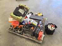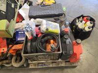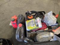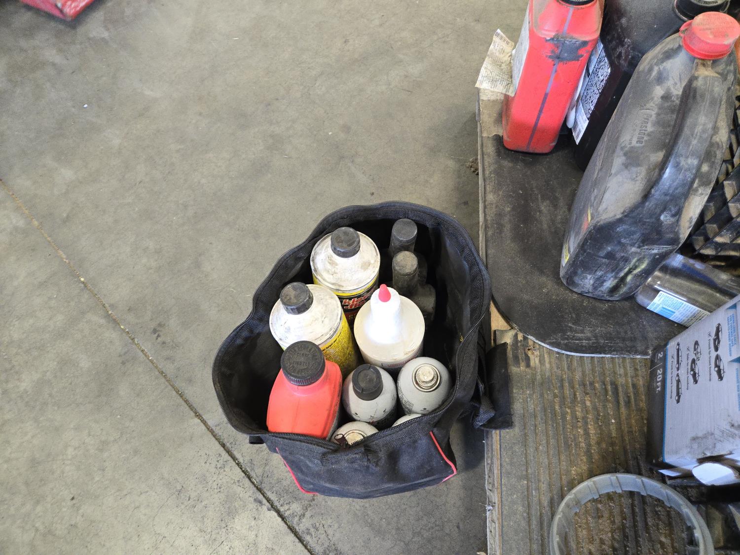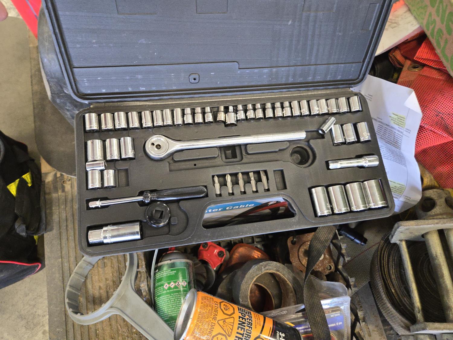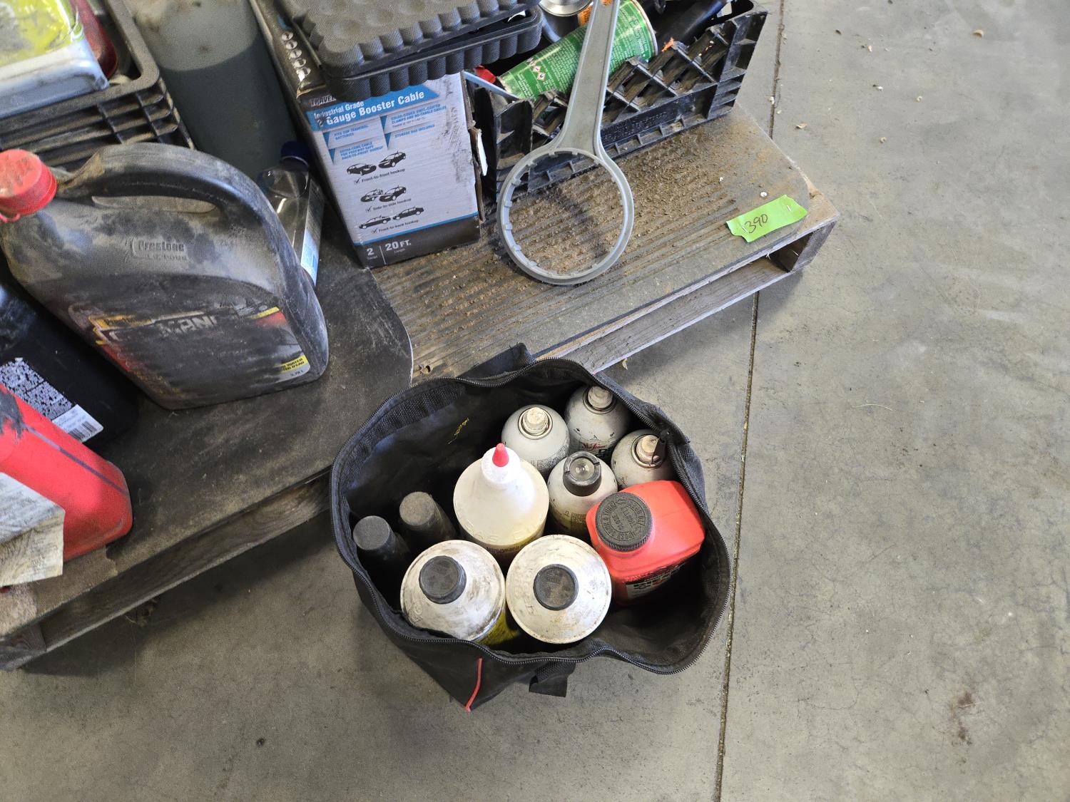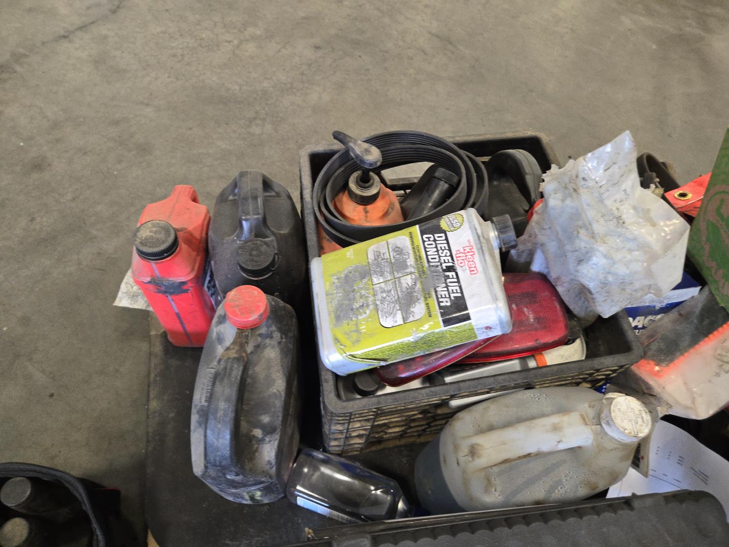 qty of shackles, shop fluids, booster cables, small socket set, miscellaneous hardware, load straps, zip ties