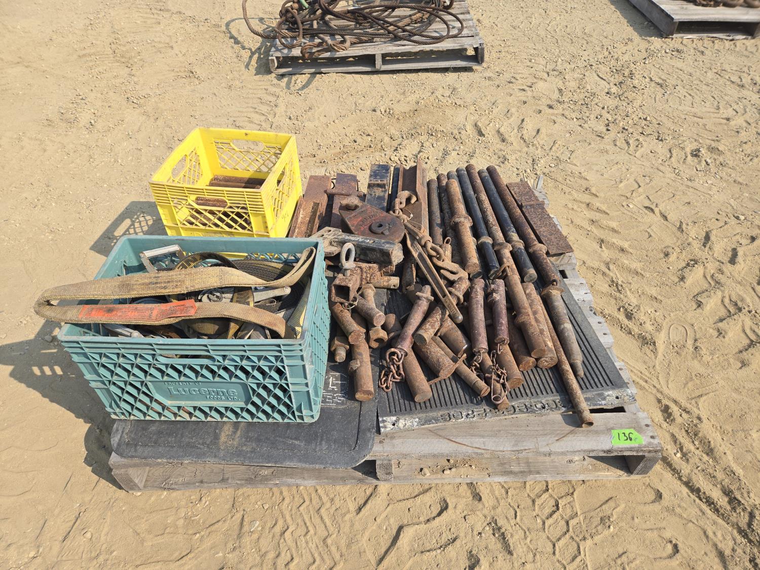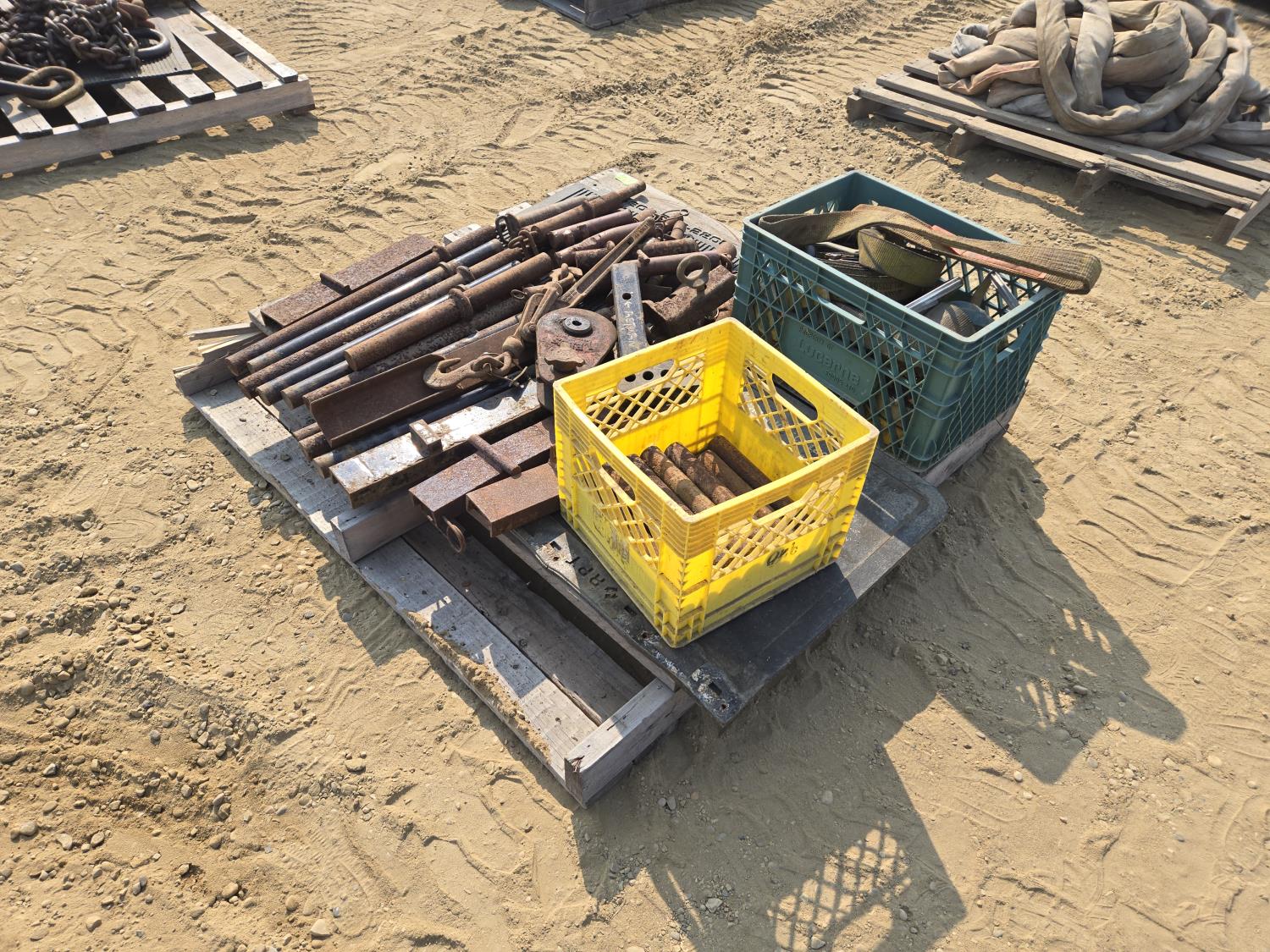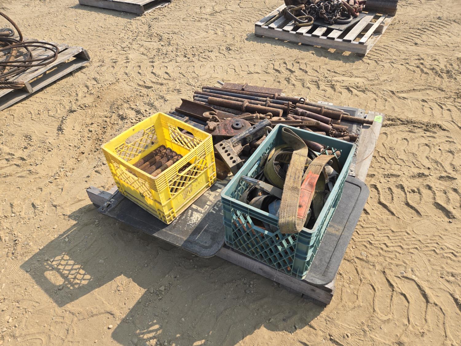 315 Qty of Trailer Pins, Stakes, Ratchet Straps, Snatch Block & (2) Receiver Hitches