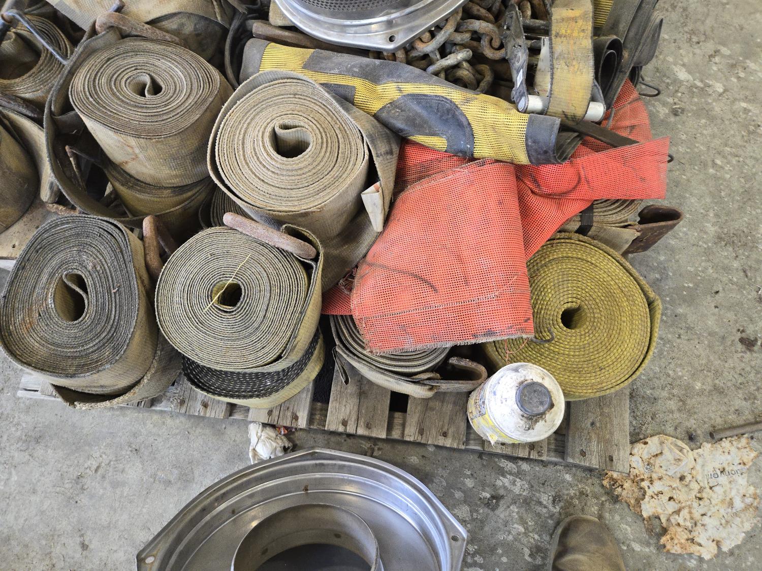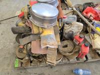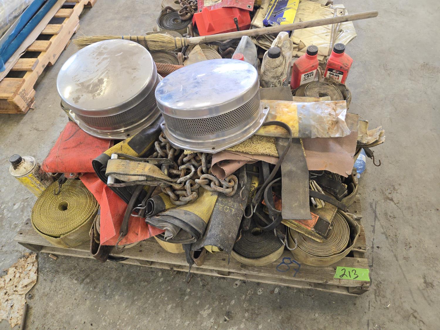 chains, tarps straps, 4 inch load straps, (2) air cleaner caps, shop fluids, miscellaneous hardware