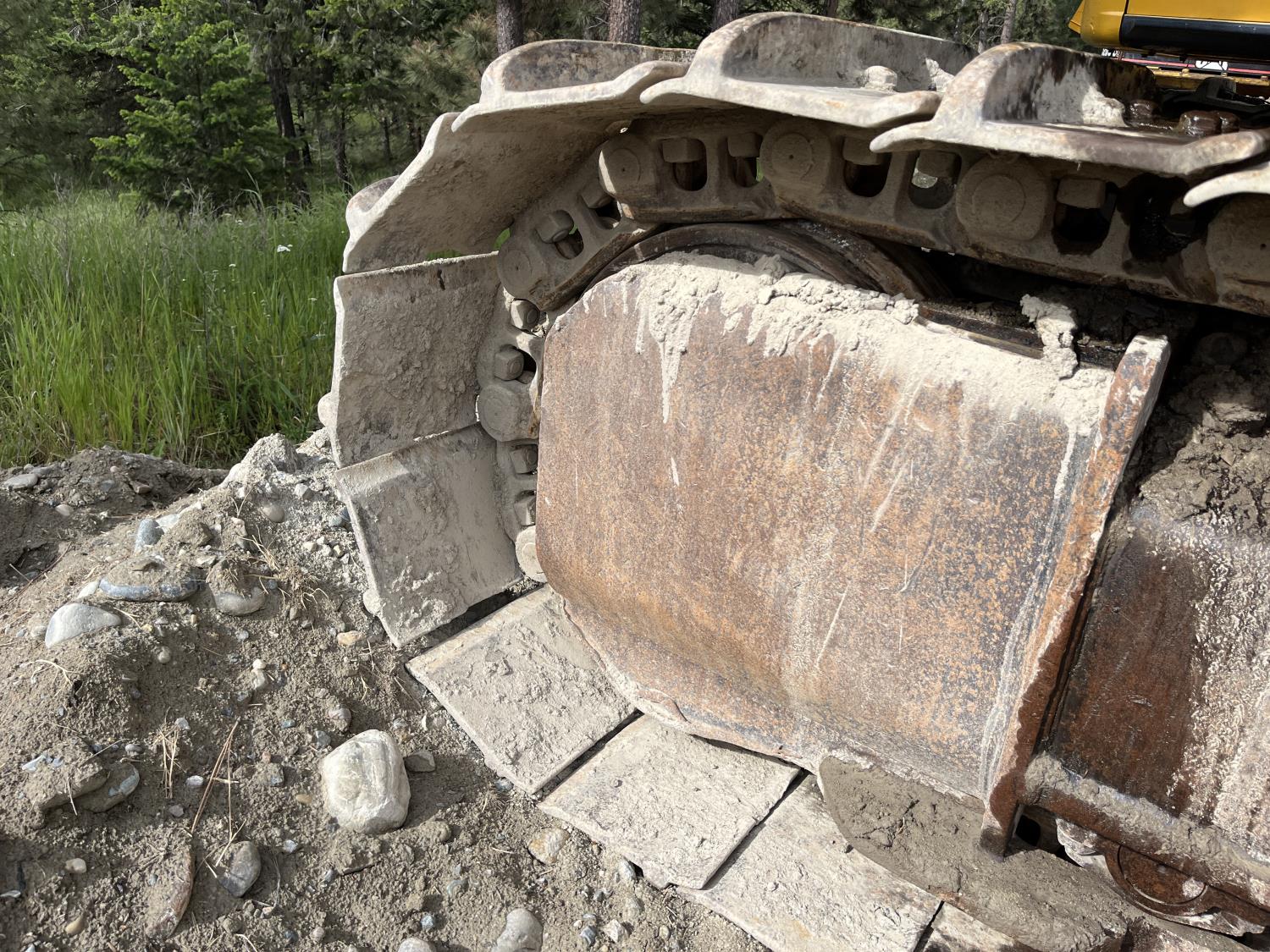 Enclosed cab, A/C, pilot controls, cab screens, 48 inch dig bucket, Q/C coupler, hydraulic thumb, 1 auxiliary hydraulics, 10 Ft 6 inch stick, catwalks, full forestry guarding, 28 inch track pads, triple grousers
