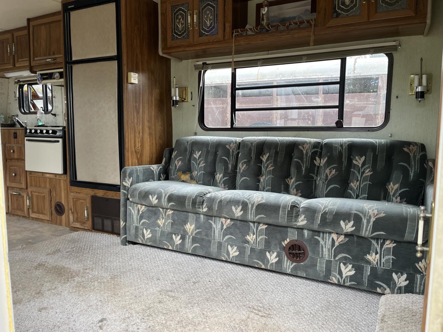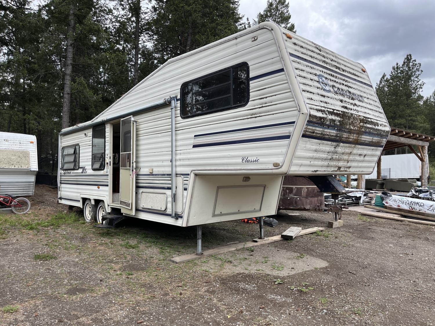 stove, fridge, microwave, full bath, A/C, manual awning, 78-15 tires