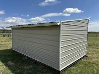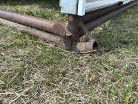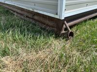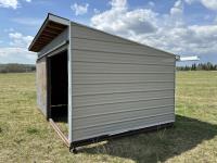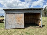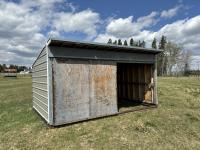 pipe frame skid, wood frame, metal roof and cladding, 96" high at front, 80" high at rear