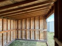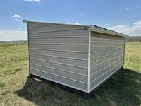 pipe frame skid, wood frame, metal roof and cladding, 96" high at front, 80" high at rear