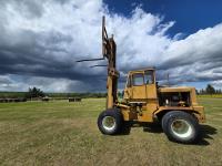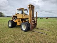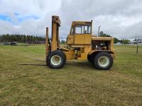 12.5 lift height with dual stage mast, 6 ft pallet forks, Ford 6 cylinder diesel engine, Allison 3 speed transmission, AUX hydraulics, 425/65R22.5 duals on both axles