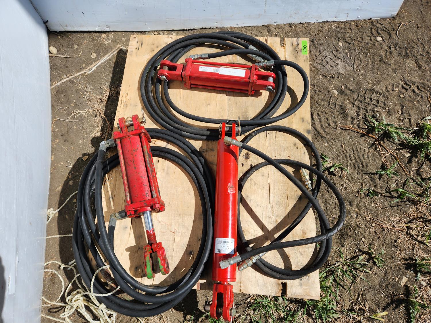 10 (3) Hydraulic Rams with Hoses (2) 8 Inch Stroke (1) 16 Inch Stroke