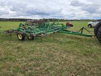6 inch spacing, 8 inch sweeps, spring tooth harrows, walking axles on main frame, walking axles on wings, 3 bar harrow, spring tooth length 15 inch, adjustable front hitch, 7.60-15 tires