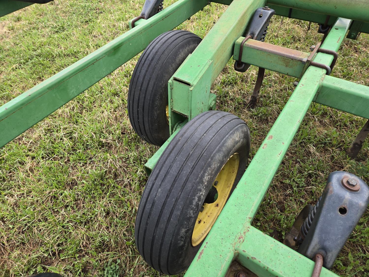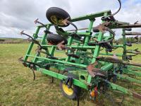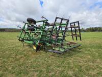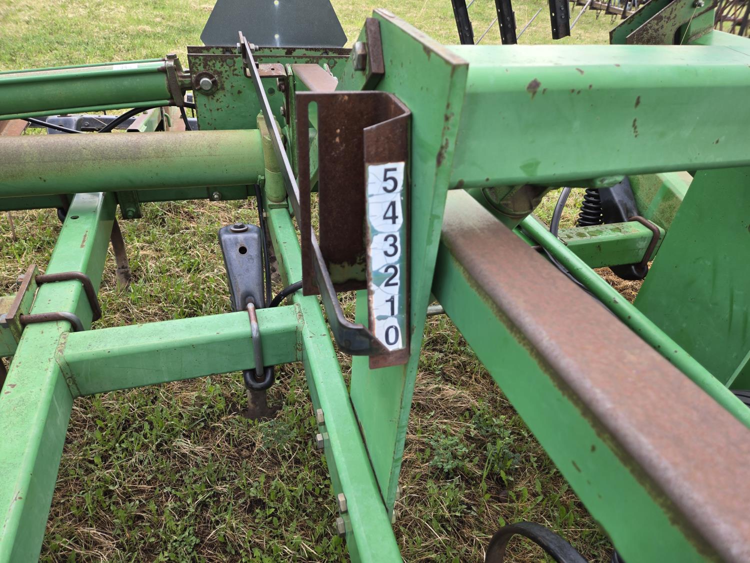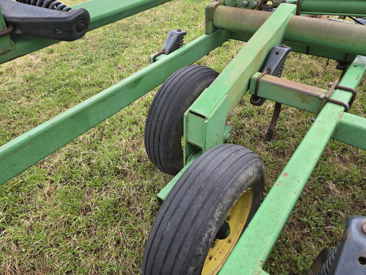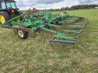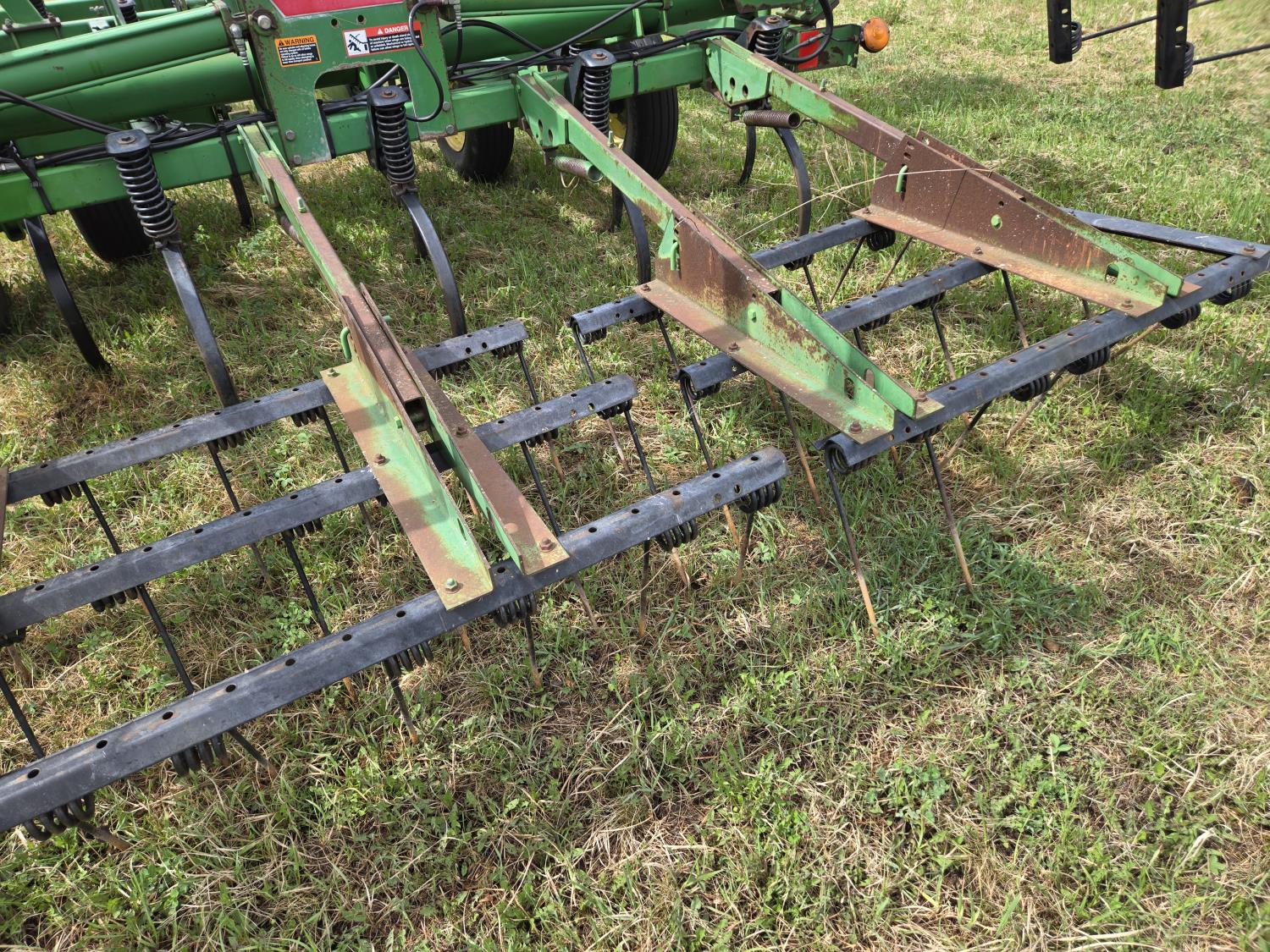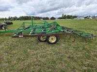6 inch spacing, 8 inch sweeps, spring tooth harrows, walking axles on main frame, walking axles on wings, 3 bar harrow, spring tooth length 15 inch, adjustable front hitch, 7.60-15 tires