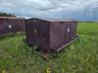 60 inch wide X 108 inch long X 48 inch high, include barrels, catwalk, on pipe skid with pallet fork pockets