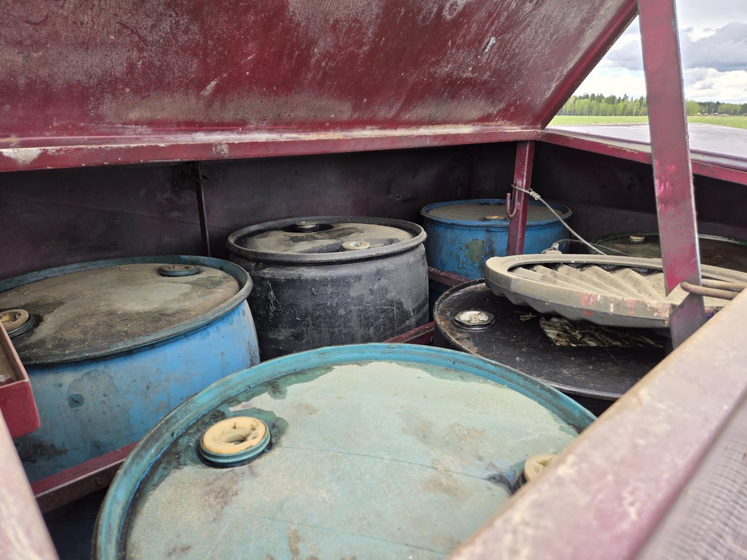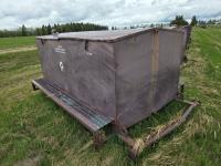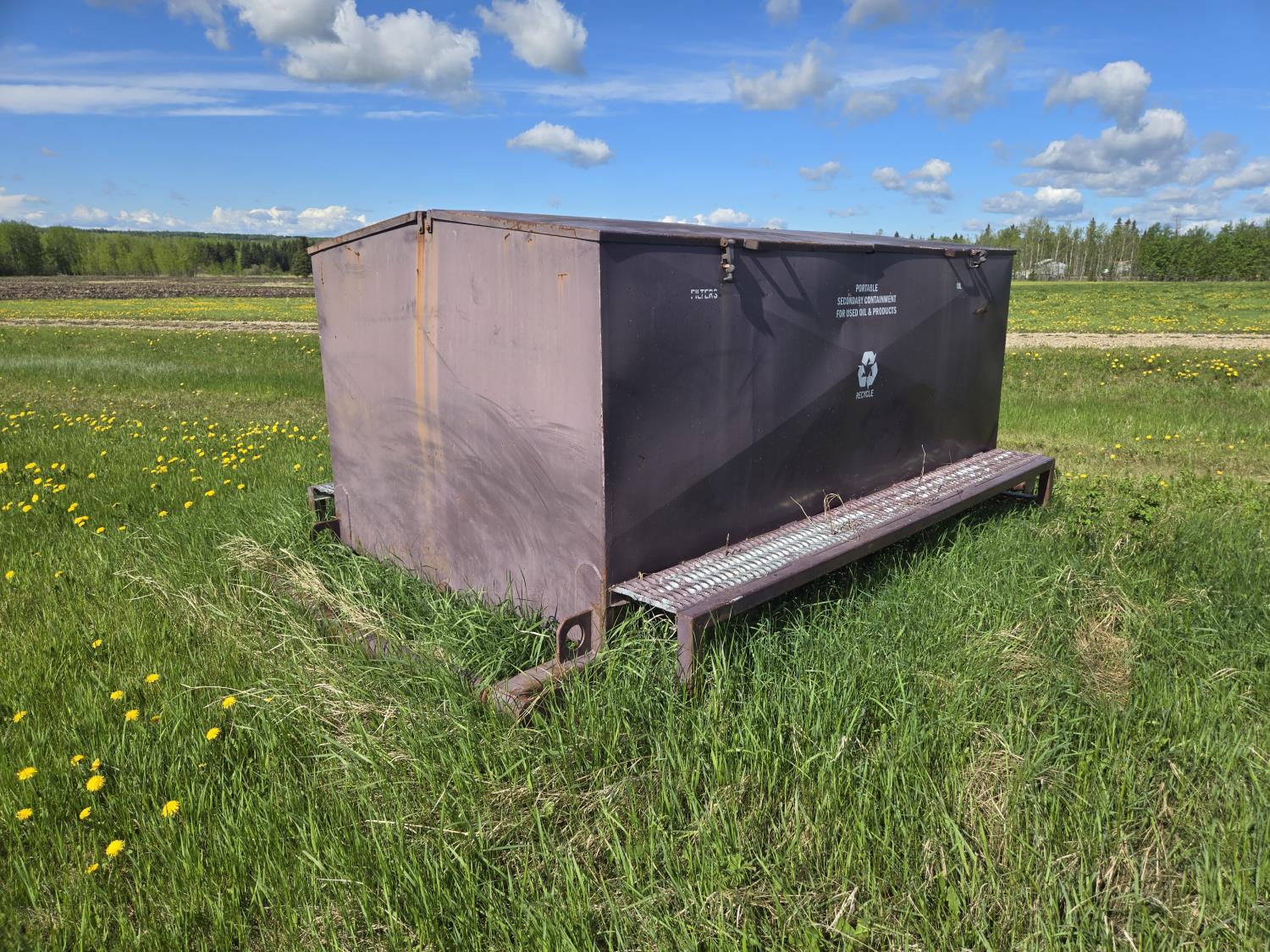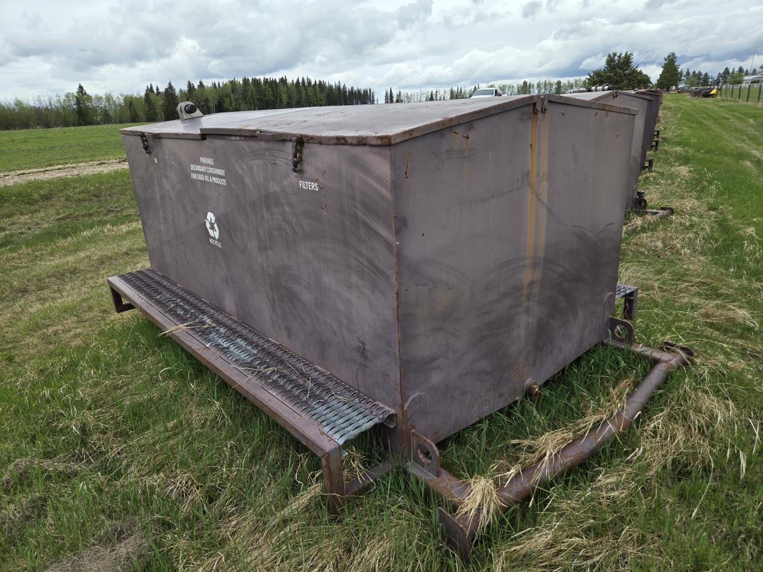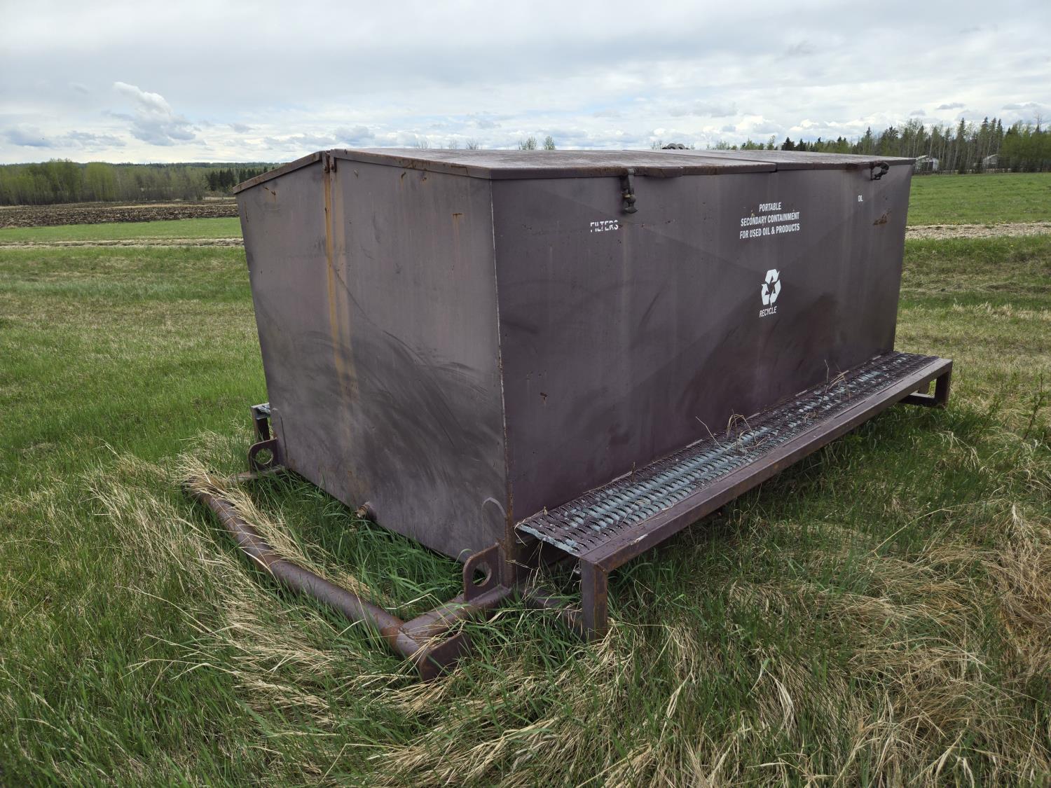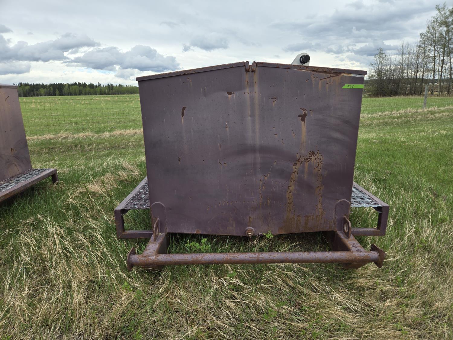 60 inch wide X 108 inch long X 48 inch high, include barrels, catwalk, on pipe skid with pallet fork pockets