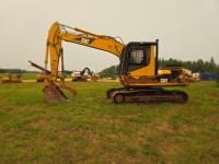 Enclosed cab, 36 inch dig bucket, hydraulic thumb, 9 Ft 6 inch stick, 28 inch track pads, double grousers