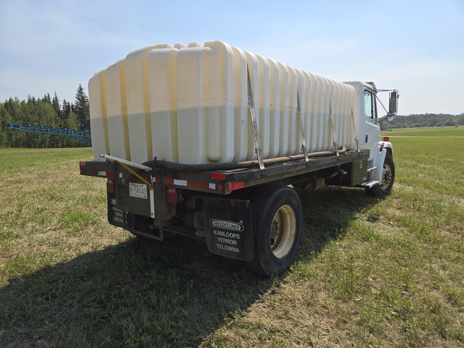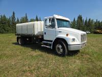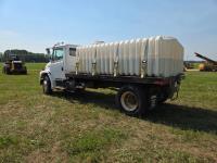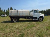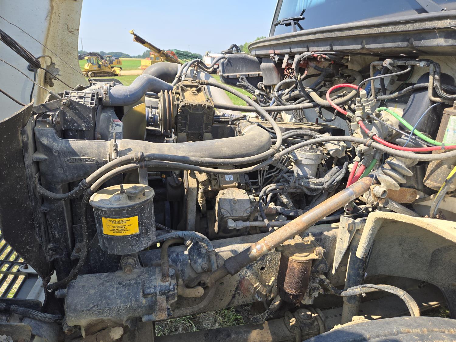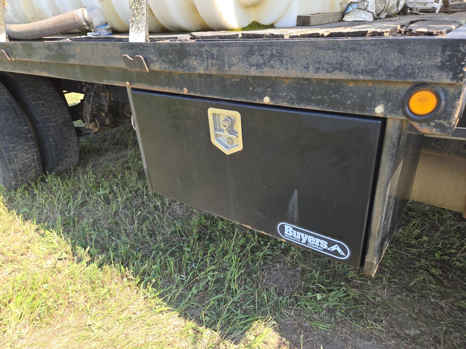Cummins 24 VALVE 6 cylinder diesel engine, positive air shutoff, 6 speed manual transmission, 8 ft x 14 ft deck, poly water tank, spring suspension, air brakes, 12000 lb front axles, 23000 lb rear axle, 11R22.5 tires