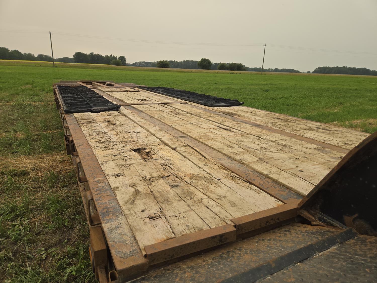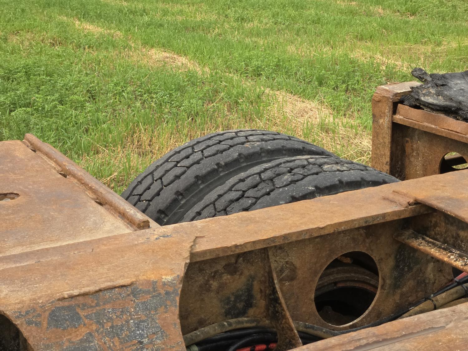 7 ft flip over neck, 10 ft wide, 24 ft main deck. swing out wide load lights, air ride, beaver tails, 275/70R22.5 tirtes