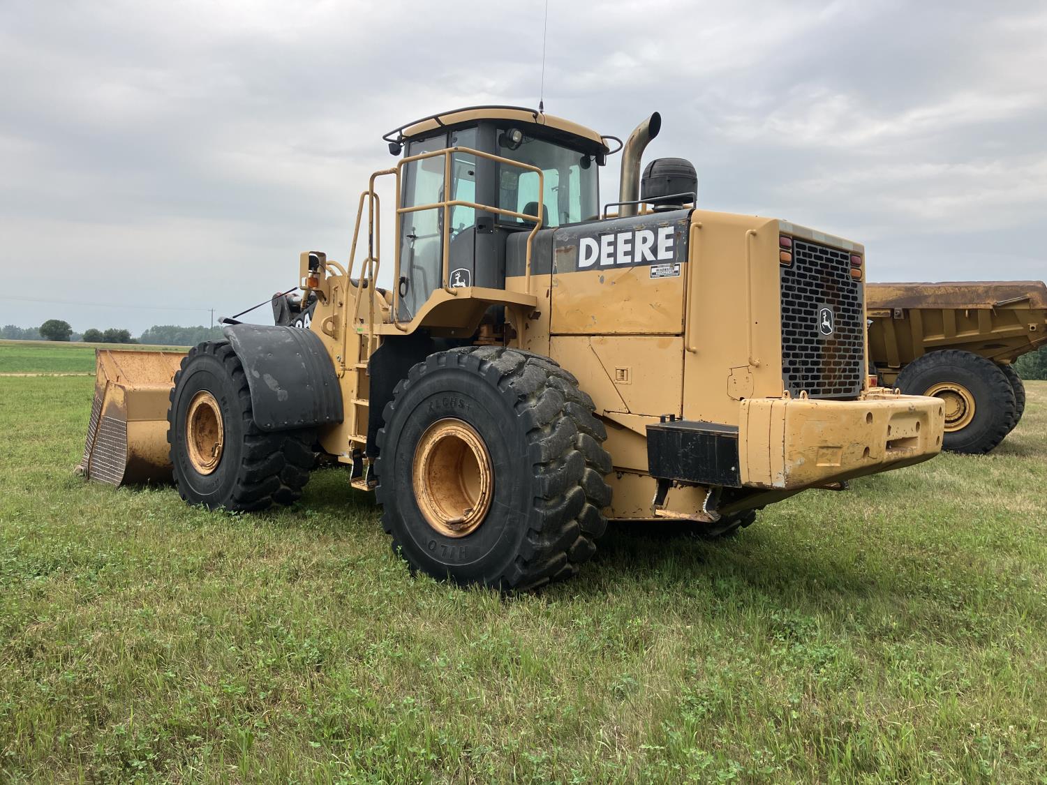 Enclosed cab, 4 speed powershift transmission, 6 yard bucket, counter weight, 26.5-25 tires