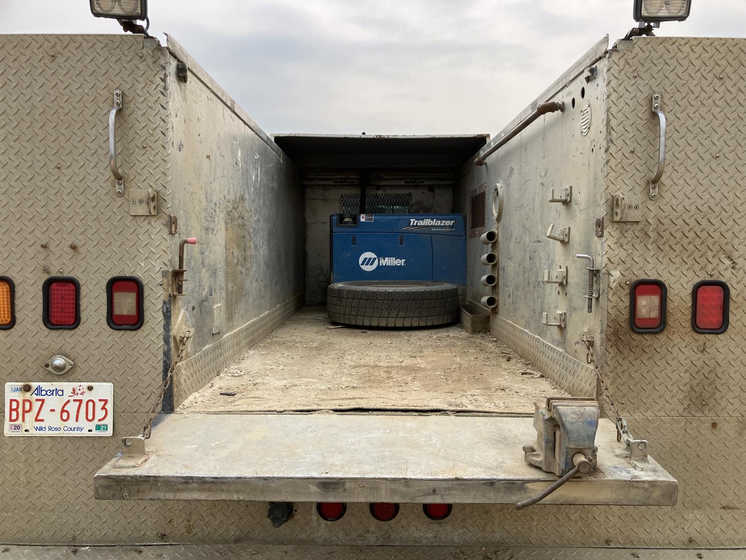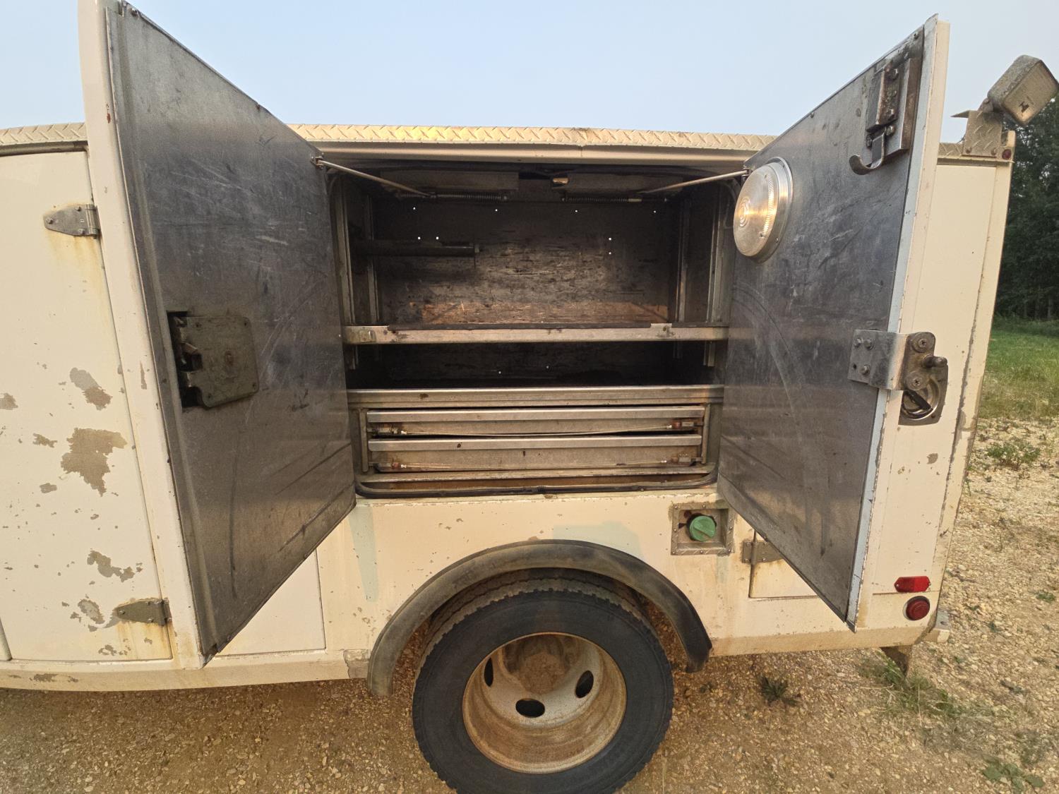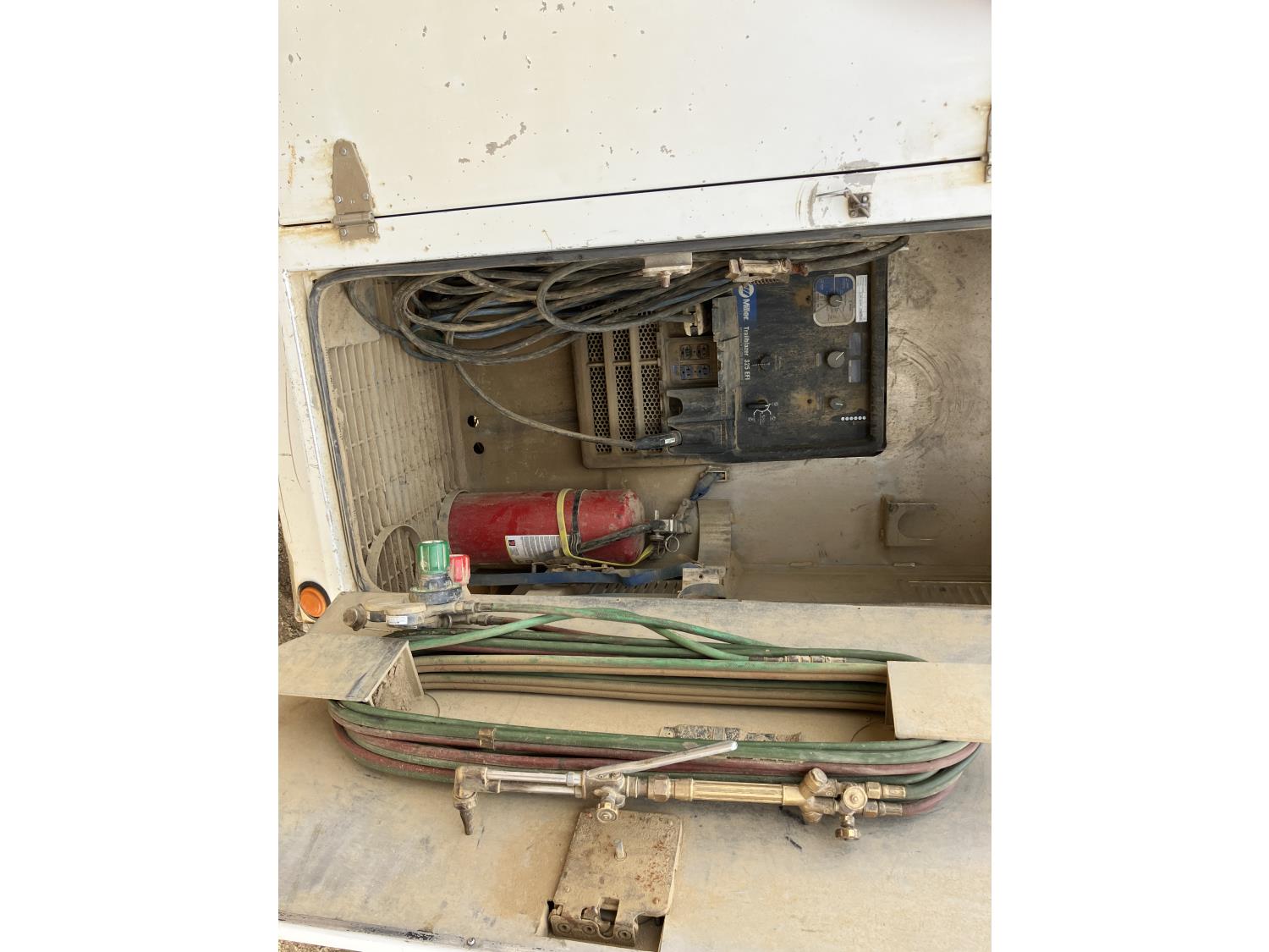 Ford 6.7 6 cylinder diesel engine, emissions deleted, automatic transmission, A/C, Aluminum 11 ft mechanics service body with Miller Trailblazer 325 gas welder (784 hours), air board air compressor, cutting torch (no bottles), 245/70R19.5 tires