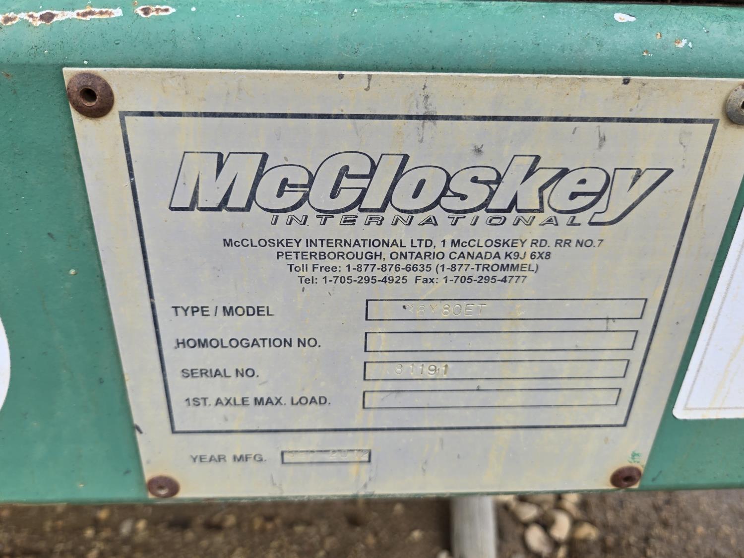 111 2012 McCloskey 36 Inch X 80 Ft Portable Radial Stacker