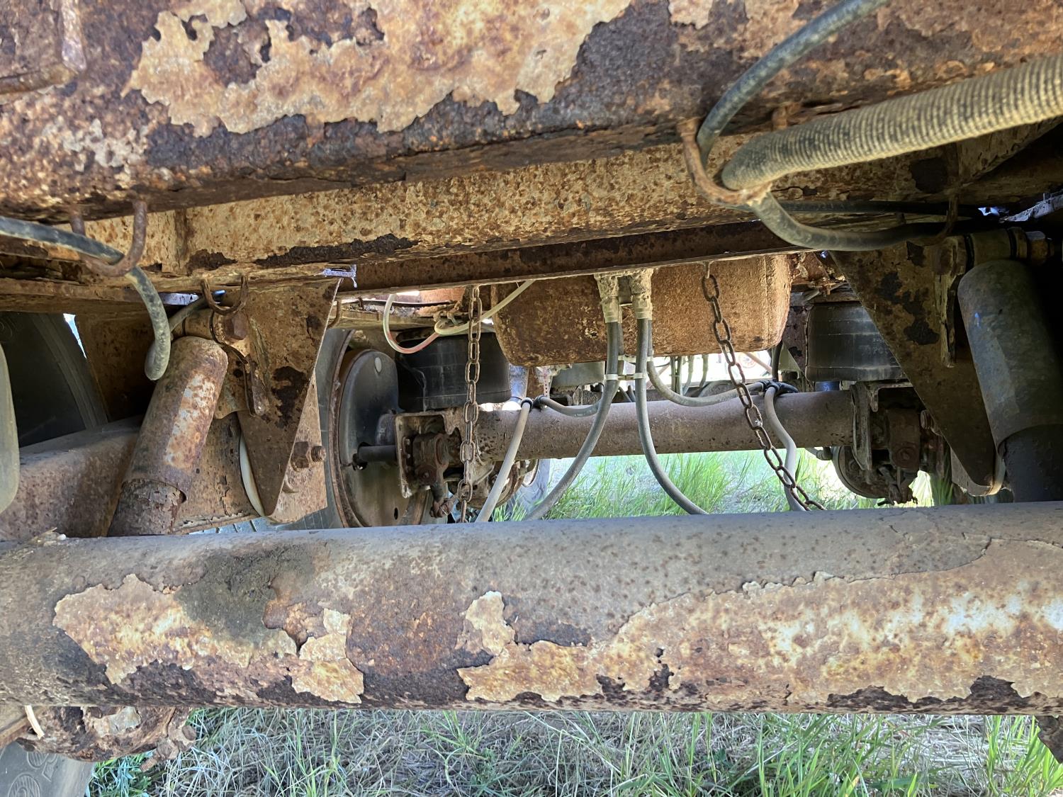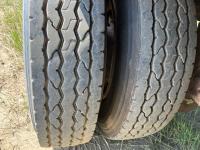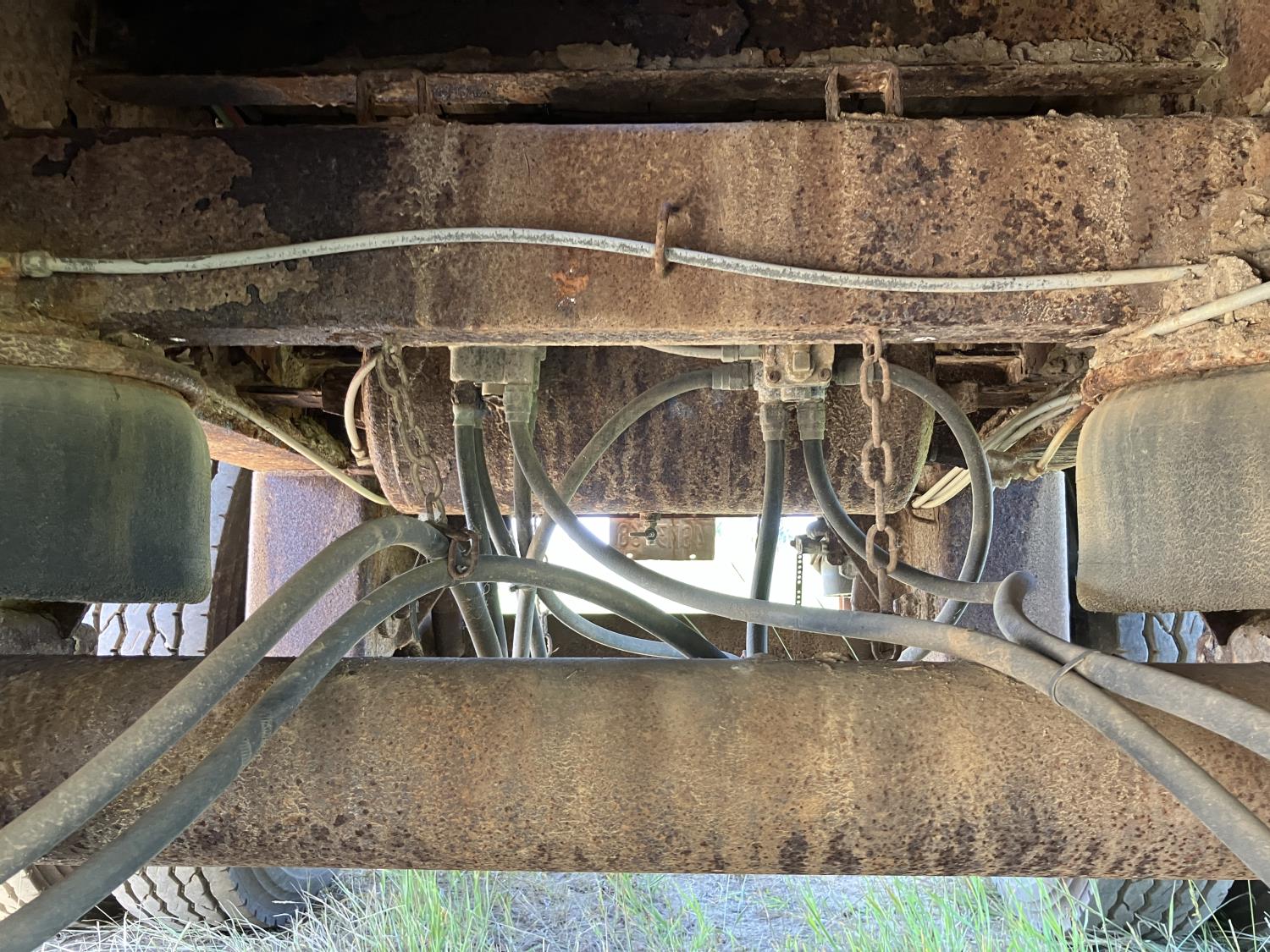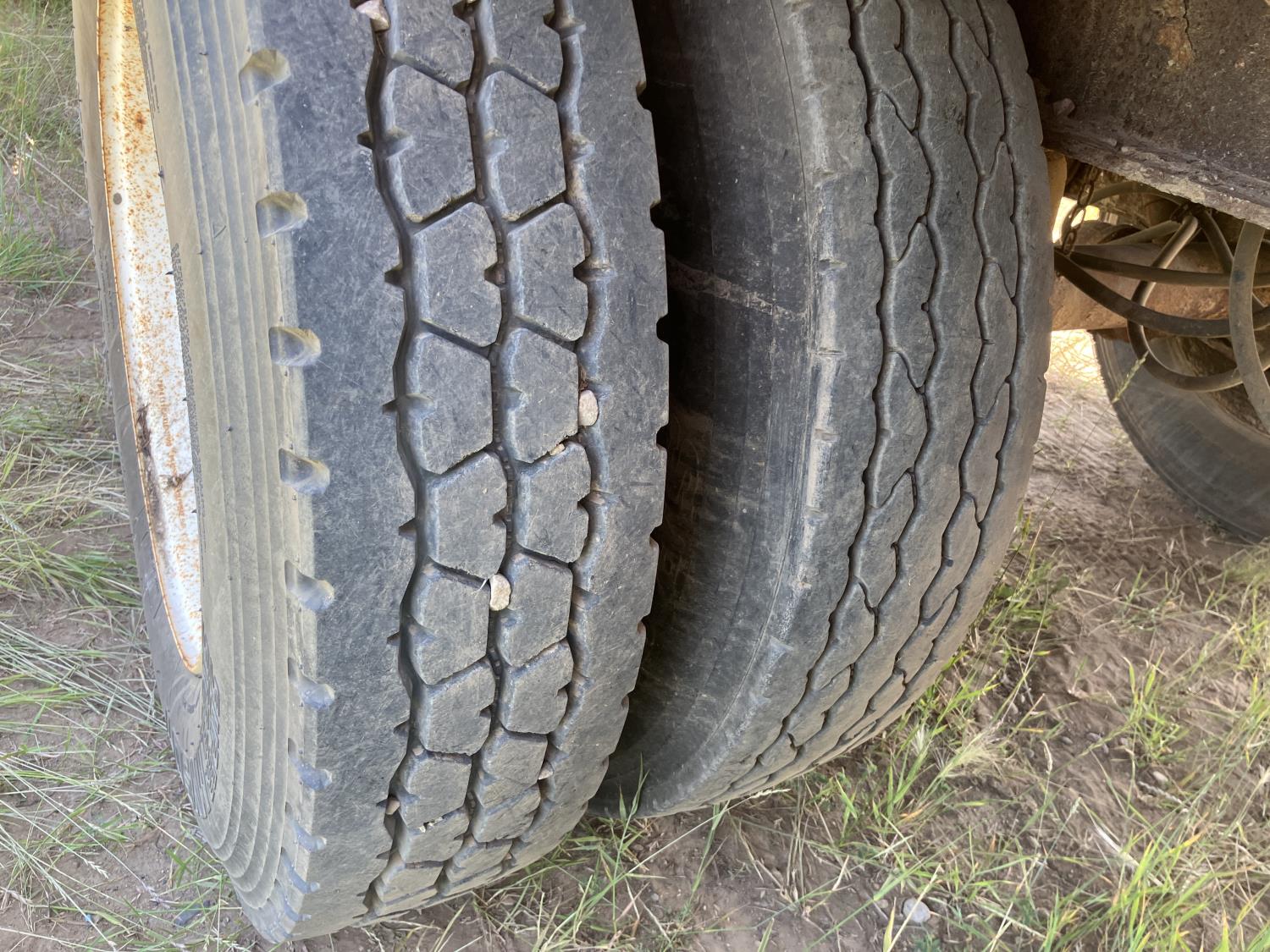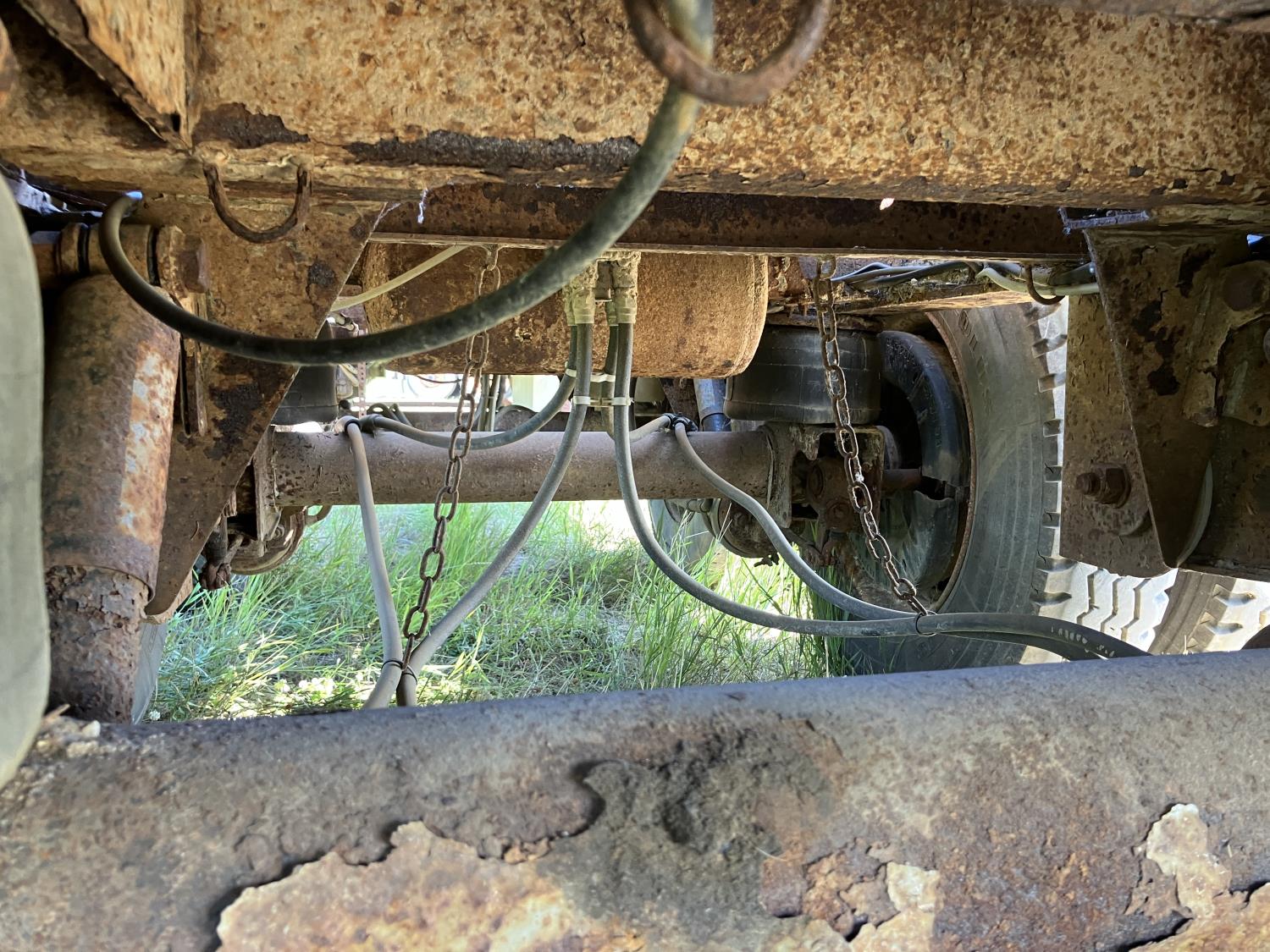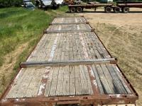 32 ft lead length, 28 ft pup length, wood deck, stake pockets, air scales, dump valves, (2) right aluminum tool boxes, cargo winches on both sides, air ride suspension, 11R24.5 tires