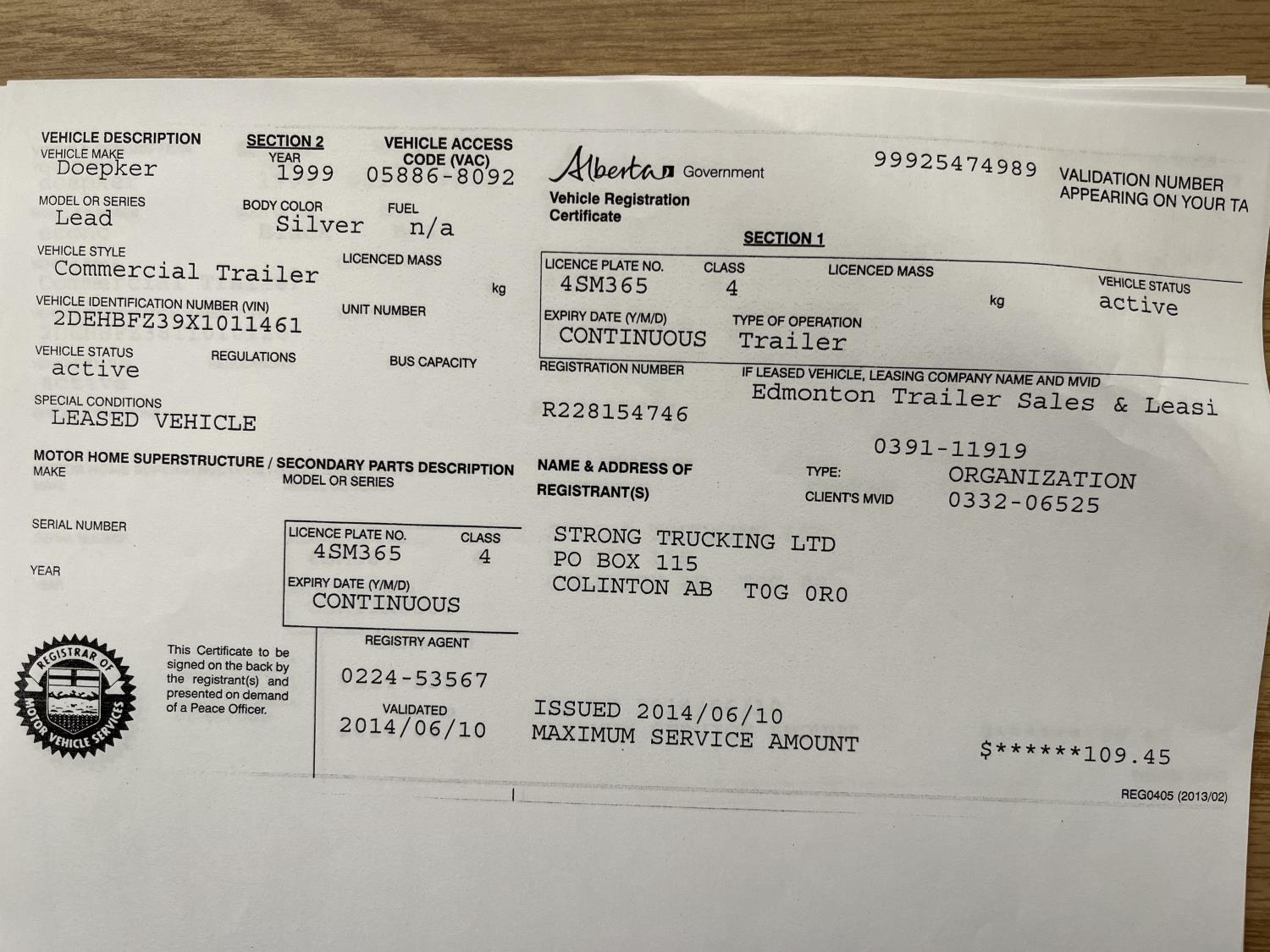 Copy of registration on hand. - Location: