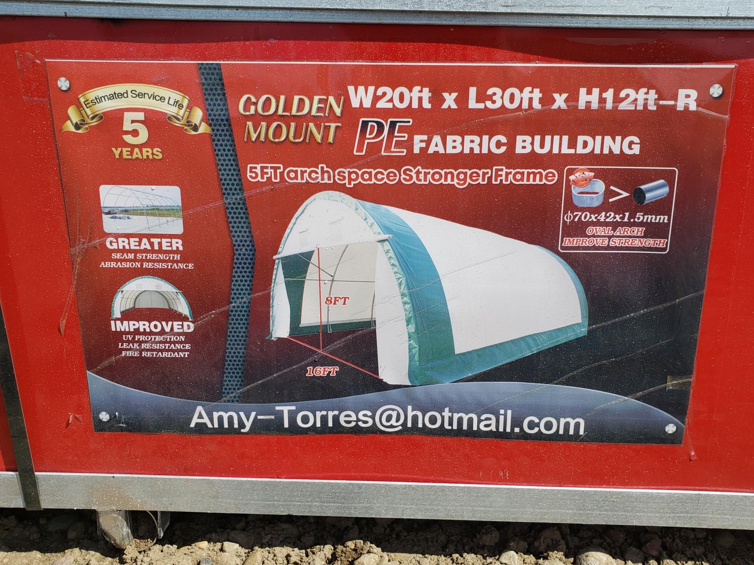 136 Golden Mount 203012R 20 Ft X 30 Ft X 12 Ft Dome Storage Shelter (Unused)