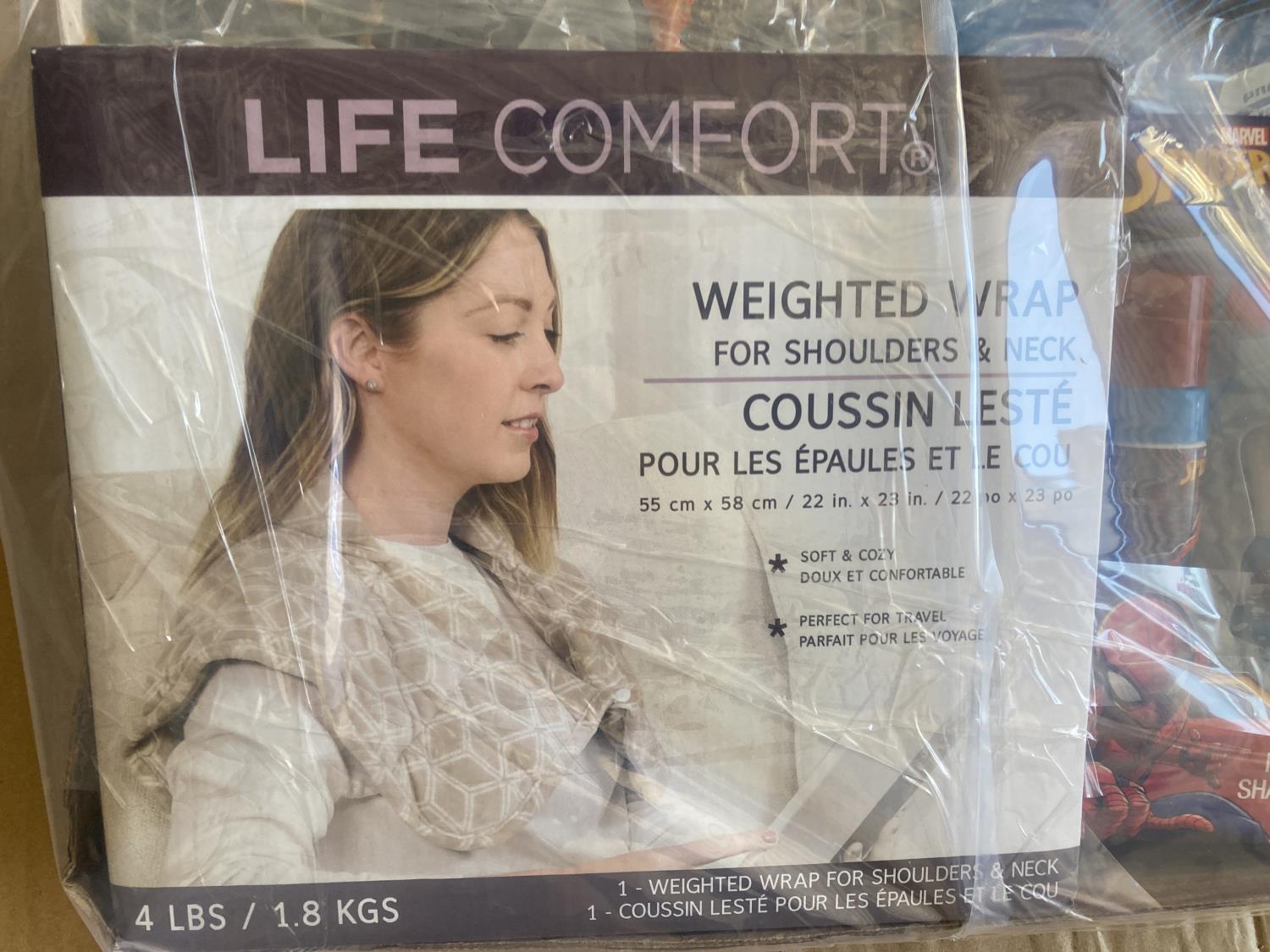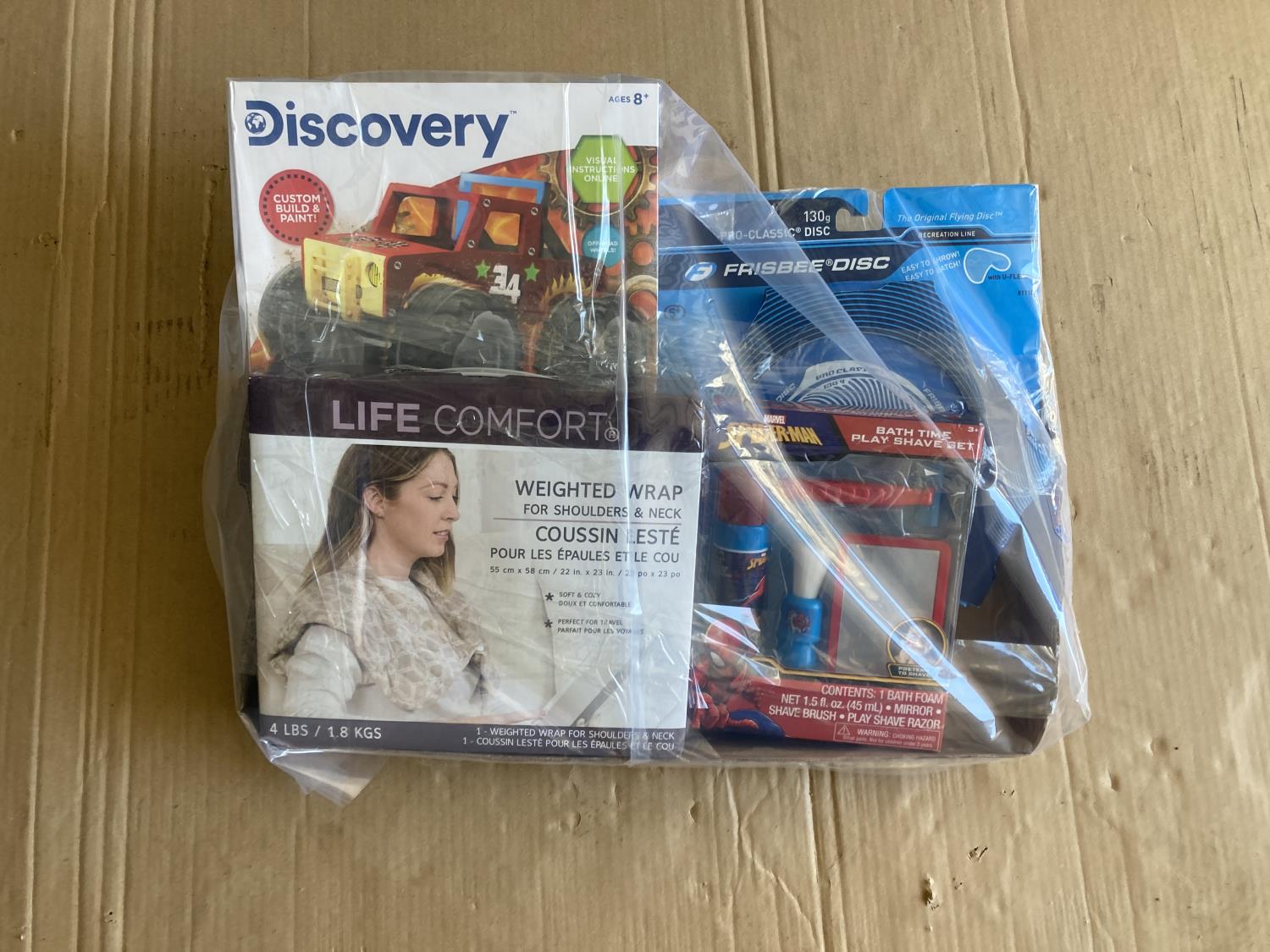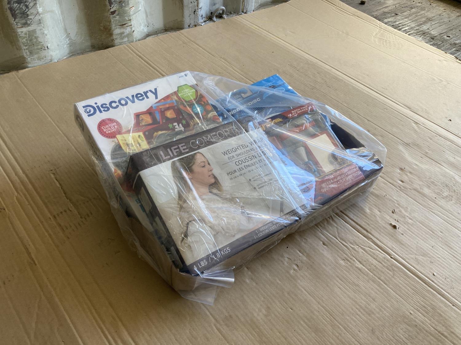 weighted shoulder blanket, kids shaving kit, frisbee