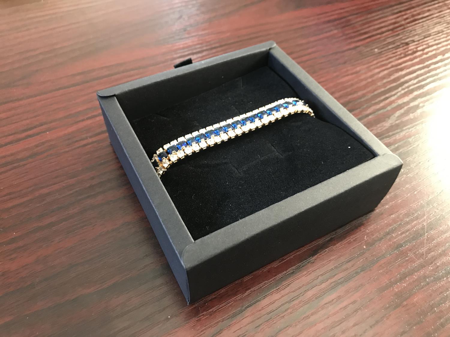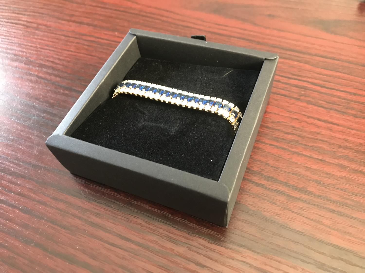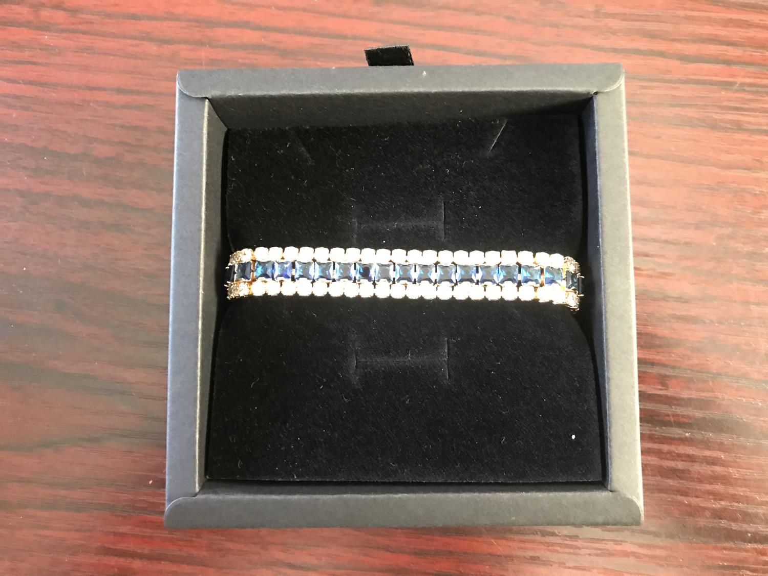 55 Smartlife 14K Gold Plated 4.0 mm Princess Cut Blue Sapphire Tennis Bracelet (Unused)