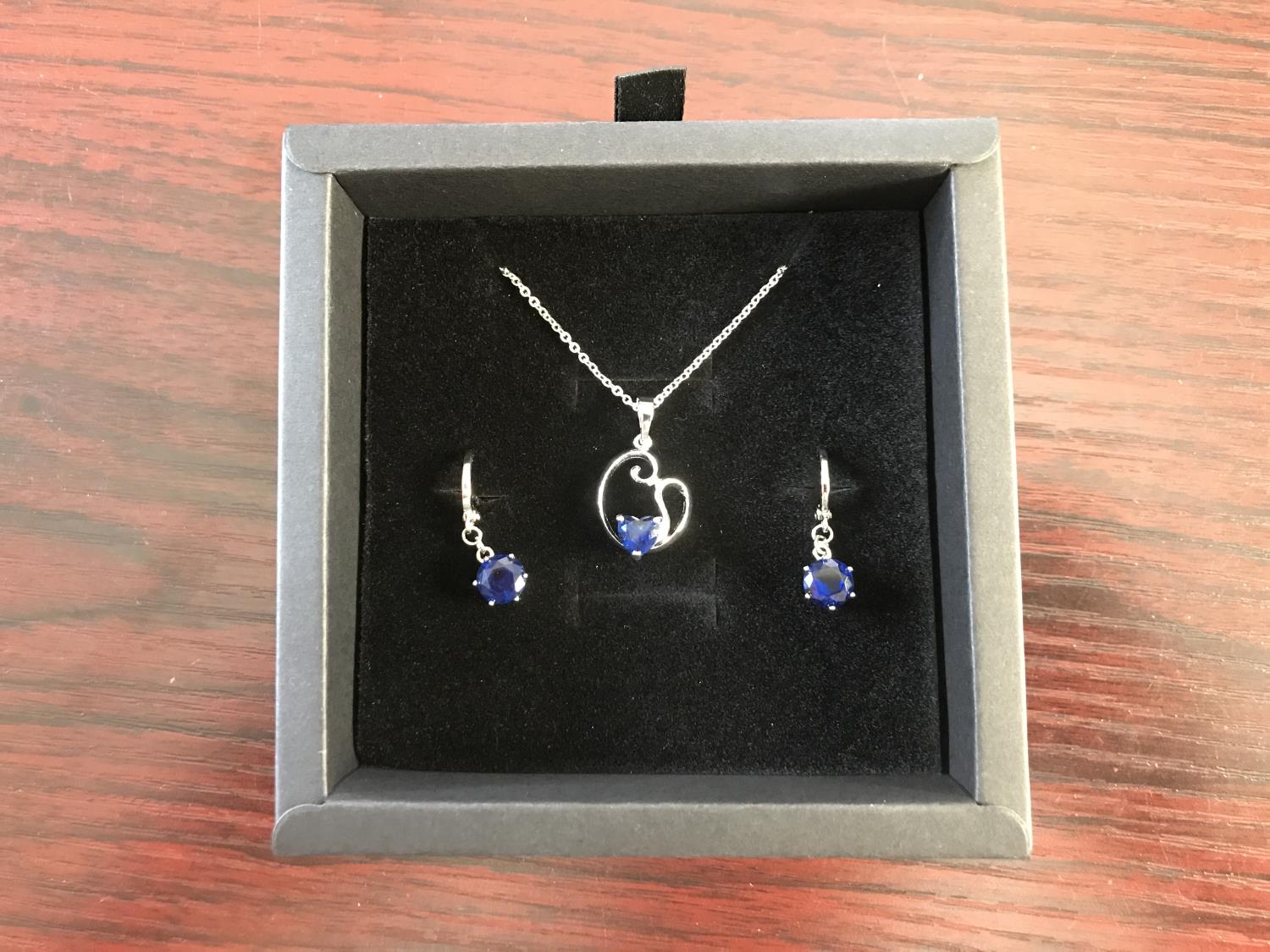 59 Smartlife Platinum Plated 2 Piece Blue Sapphire Set (Unused)