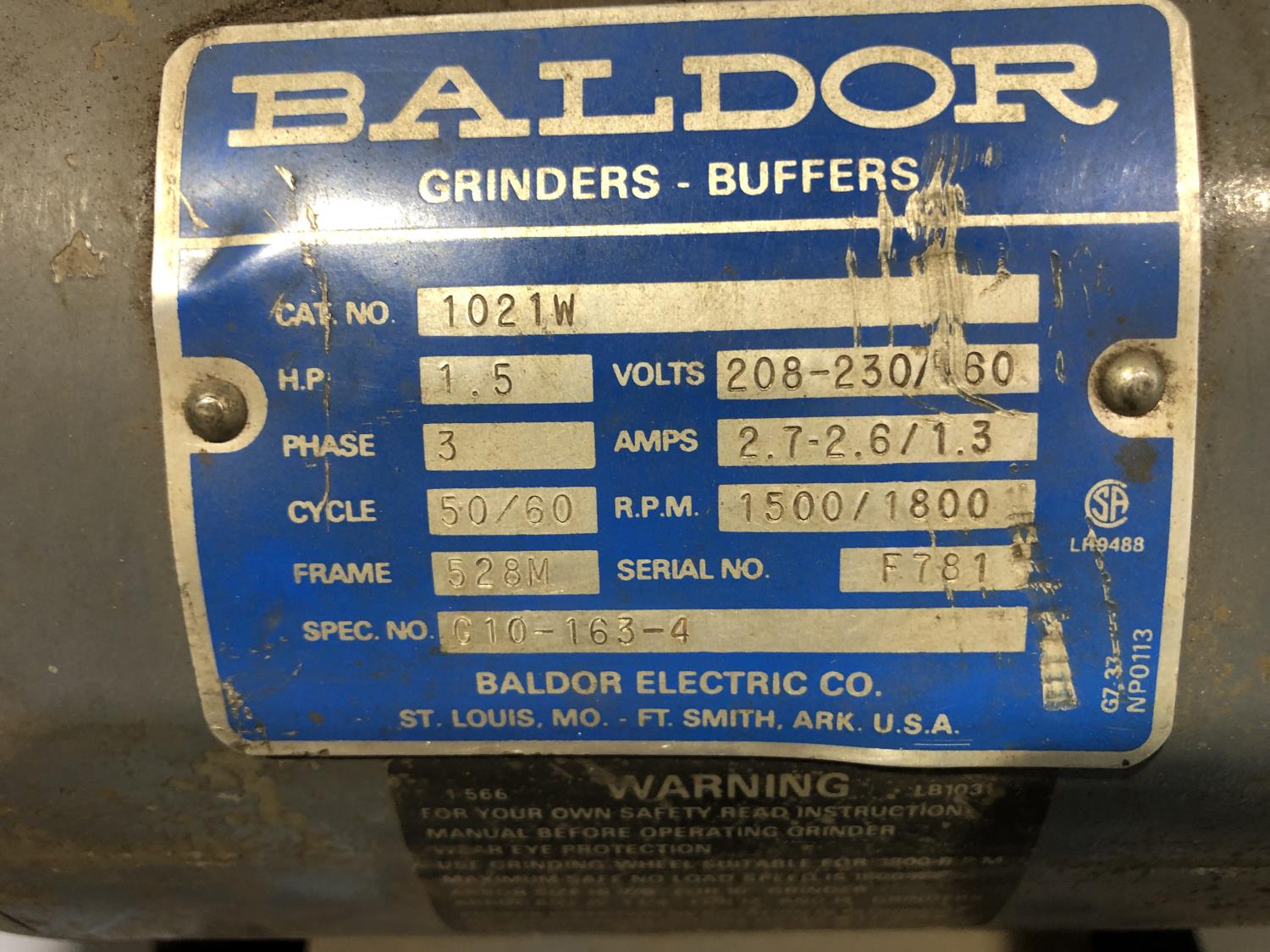 323 Baldor 1-1/2 HP Bench Grinder On Stand with Dust Collector