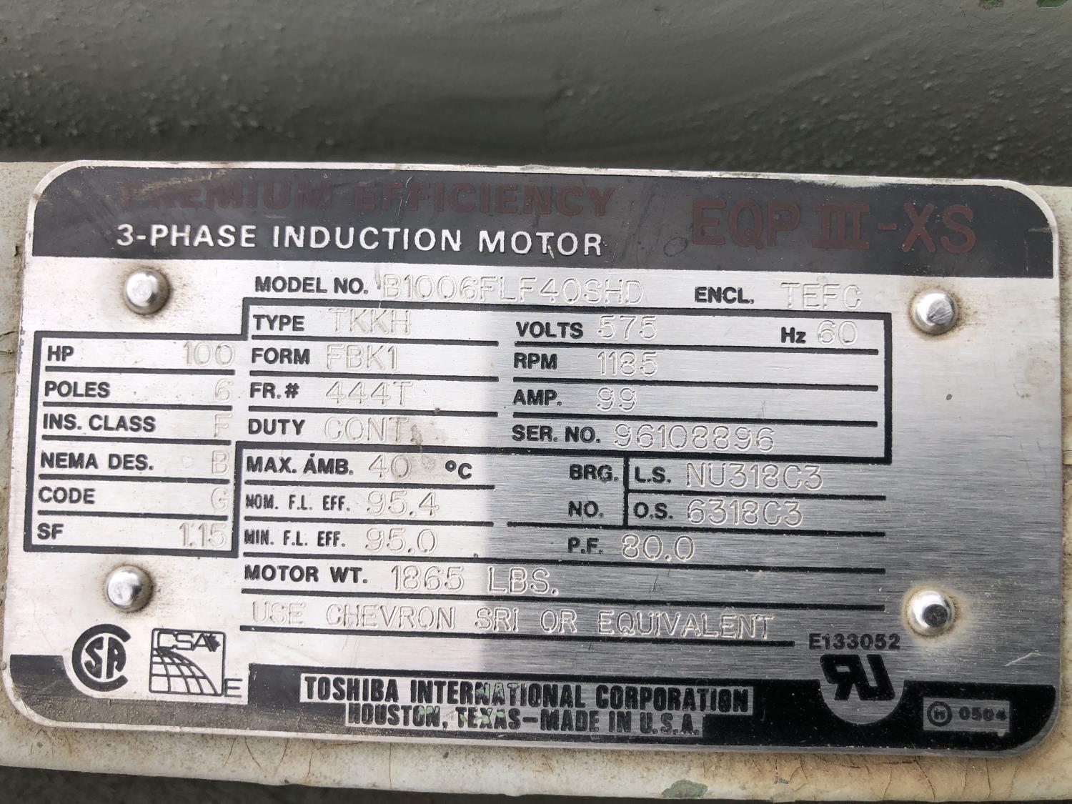 69 100 HP 3 Phase Induction Motor
