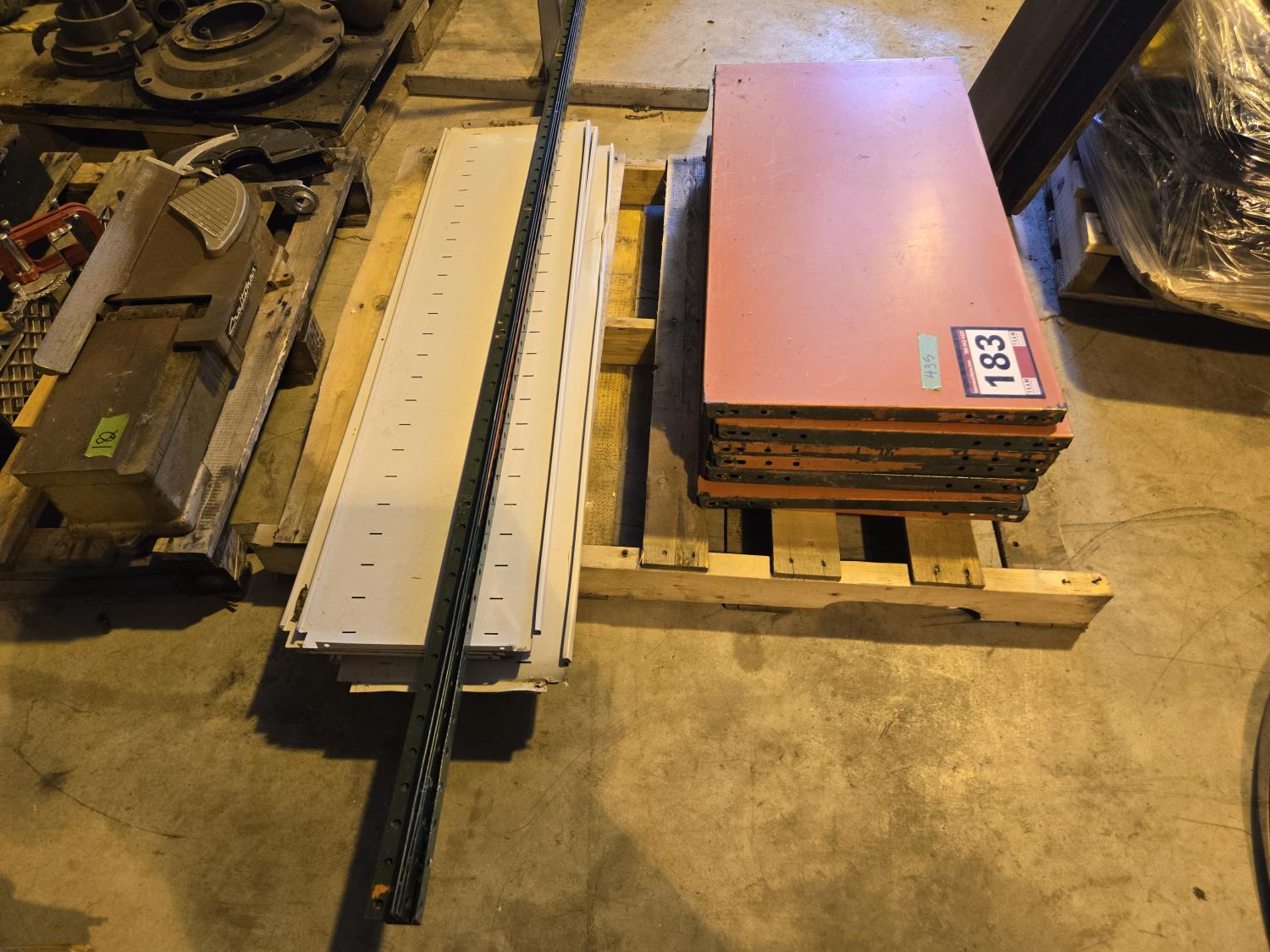 183 (7) 18 Inch X 36 Inch Metal Shelves with (4) 84 Inch Corner Posts